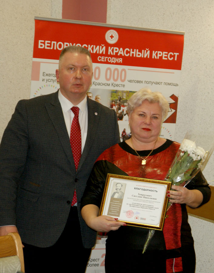 — Красный Крест помогает в решении социальных проблем, в охране здоровья населения, реализуем ряд важных стратегических направлений деятельности, реагирует на чрезвычайные и кризисные ситуации. Важным направлением в его деятельности является работа с волонтерами. Это наш бесценный ресурс, золотой фонд организации. Люди, которые безвозмездно, добровольно, на регулярной основе отдают свои силы и время на благо нашей организации для реализации ее программ помощи. При помощи волонтеров реализуется целый ряд мини-инициатив, которые направлены на оказание помощи уязвимым категориям граждан, решение социальных проблем, формирование здорового образа жизни и некоторые другие, — подчеркнул председатель Могилевской областной организации Белорусского Общества Красного Креста Андрей Мартыновский.