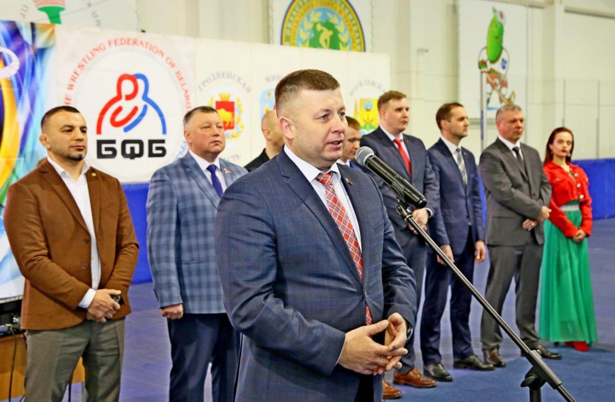 На торжественном открытии к участникам и гостям турнира обратился заместитель председателя Могилевского облисполкома, председатель областной федерации борьбы Валерий Малашко.
