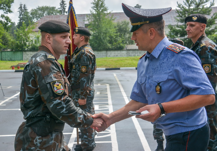 Торжественное мероприятие, посвященное вручению черных беретов и награждению сотрудников ОМОН, прошло 20 июля в Могилеве. Как сообщила официальный представитель УВД облисполкома Елена Игнатова, начальник УВД Игорь Щербаченя вручил черные береты двум молодым сотрудникам, которые накануне сдали экзамены на право их ношения — младшему сержанту милиции Евгению Крюковскому и рядовому милиции Вадиму Латышеву.