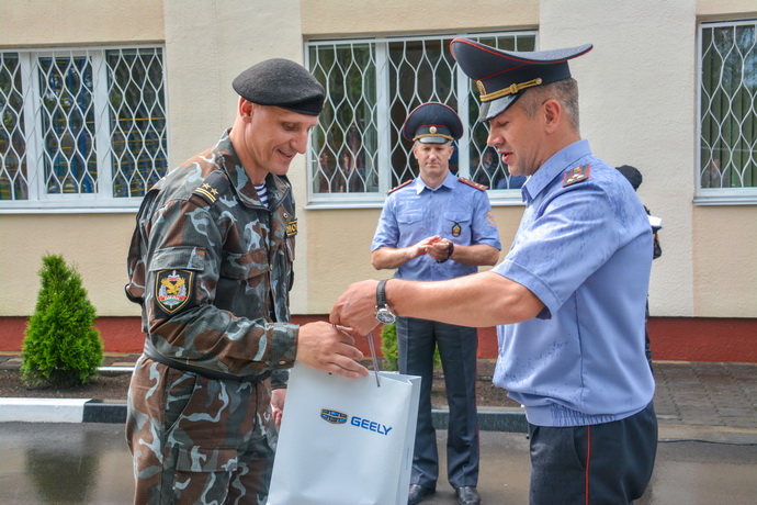 От Министерства внутренних дел и руководства УВД Игорь Щербаченя передал ключи от служебного автомобиля «Джили Атлас» командиру ОМОН УВД Ивану Юркову.