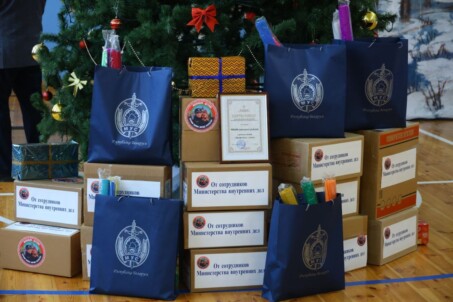 Каждому ребенку вручили сладкий подарок, мягкую игрушку — символ наступающего года, а также подарок от сотрудников центрального аппарата МВД для развития художественного творчества. Кроме того, детей пригласили на Главную елку страны во Дворец Республики, а школе-интернату передали сертификат на ценный подарок.