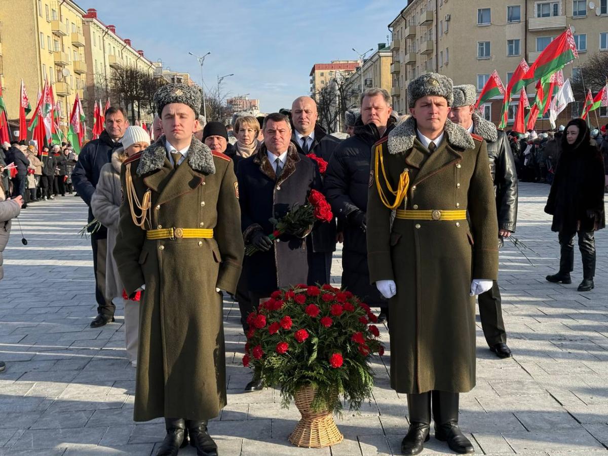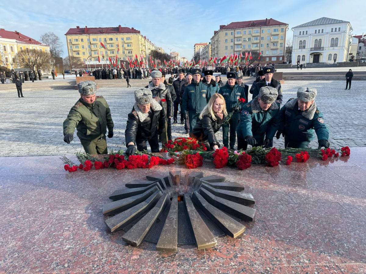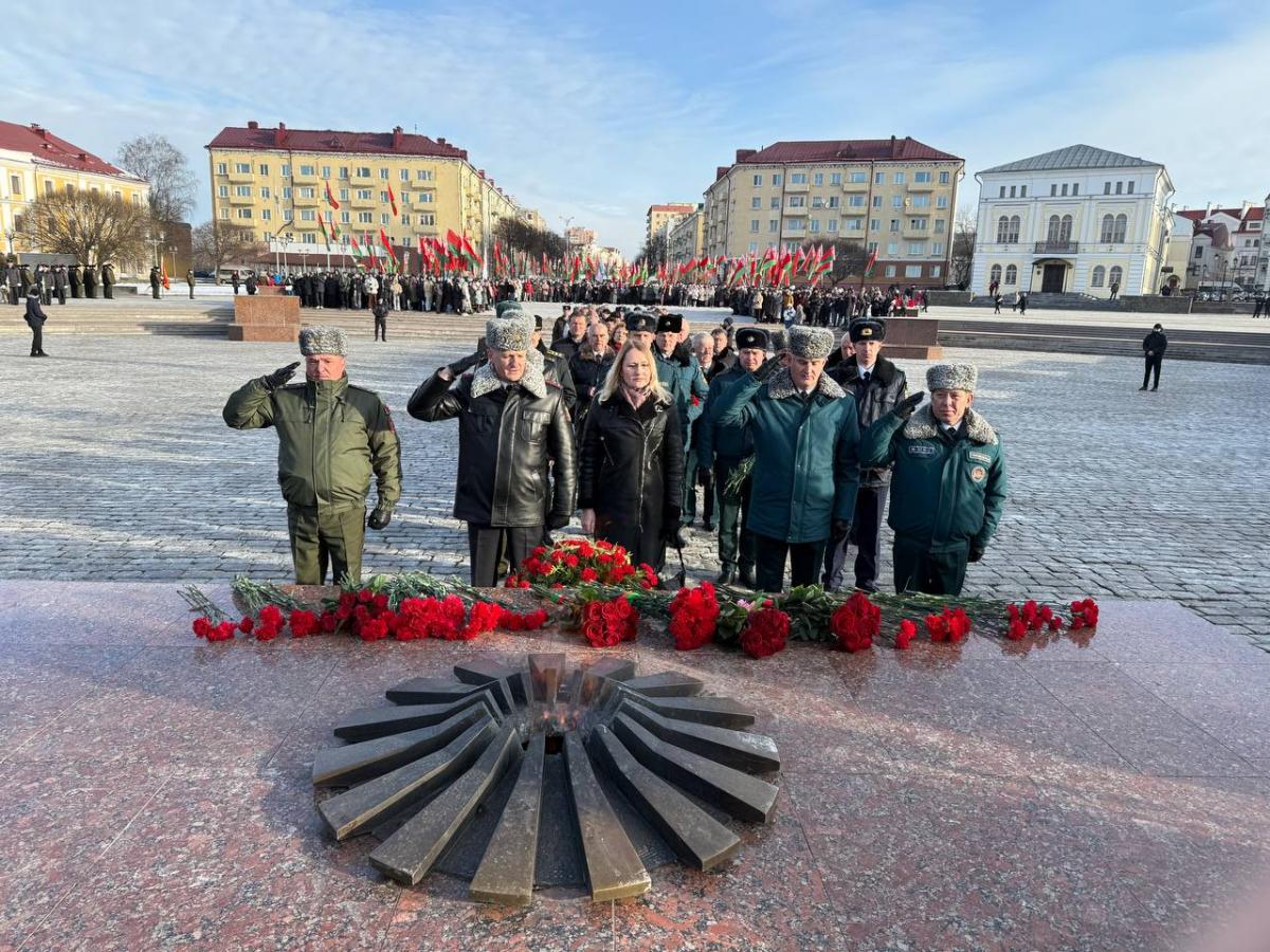 На площади Славы состоялось торжественное мероприятие, посвященное Дню защитников Отечества. Представители руководства области, города, депутатского корпуса, сенаторы, представители политических партий и общественных объединений, структур силового блока, ветераны и трудовые коллективы возложили цветы к Вечному огню и почтили минутой молчания память павших защитников Отечества. Яркой финальной точкой торжественного мероприятия стало прохождение сводной колонны структур силового блока Могилевской области. Член Совета Республики Национального собрания Республики Беларусь, председатель Могилевского областного Совета депутатов Александр Горошкин отметил, что защита своей страны в настоящее время приобрела общенародный смысл.