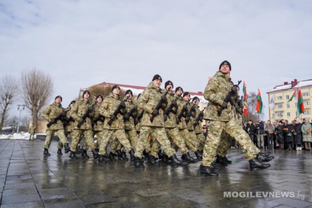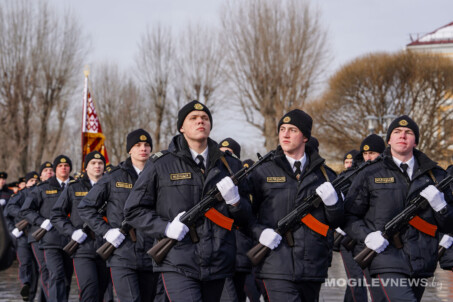 После церемонии возложения по площади Славы торжественно прошли войска Могилевского гарнизона. Вместе с ними в строю — кадеты и учащиеся военно-патриотических классов.