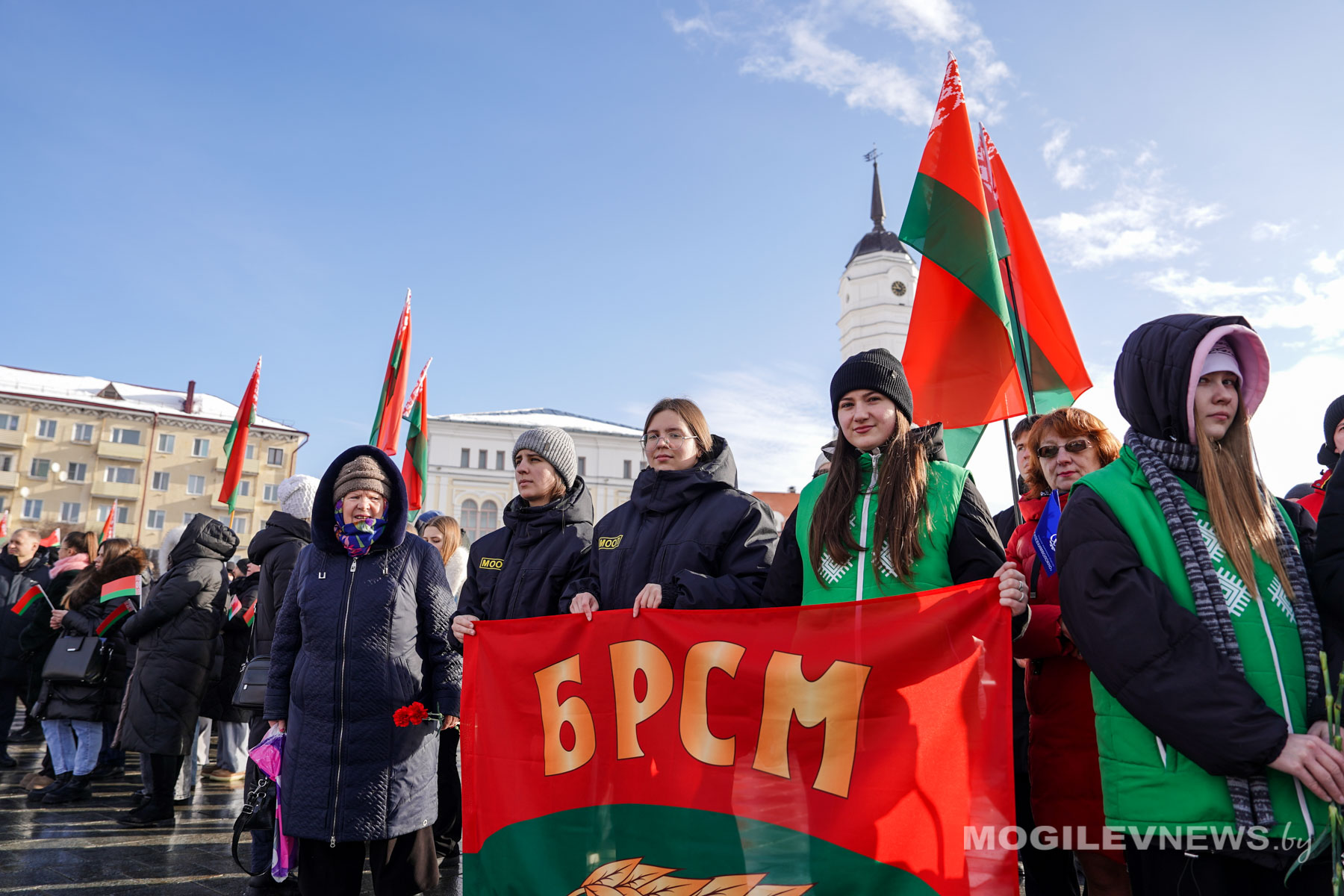 После церемонии возложения по площади Славы торжественно прошли войска Могилевского гарнизона. Вместе с ними в строю — кадеты и учащиеся военно-патриотических классов.