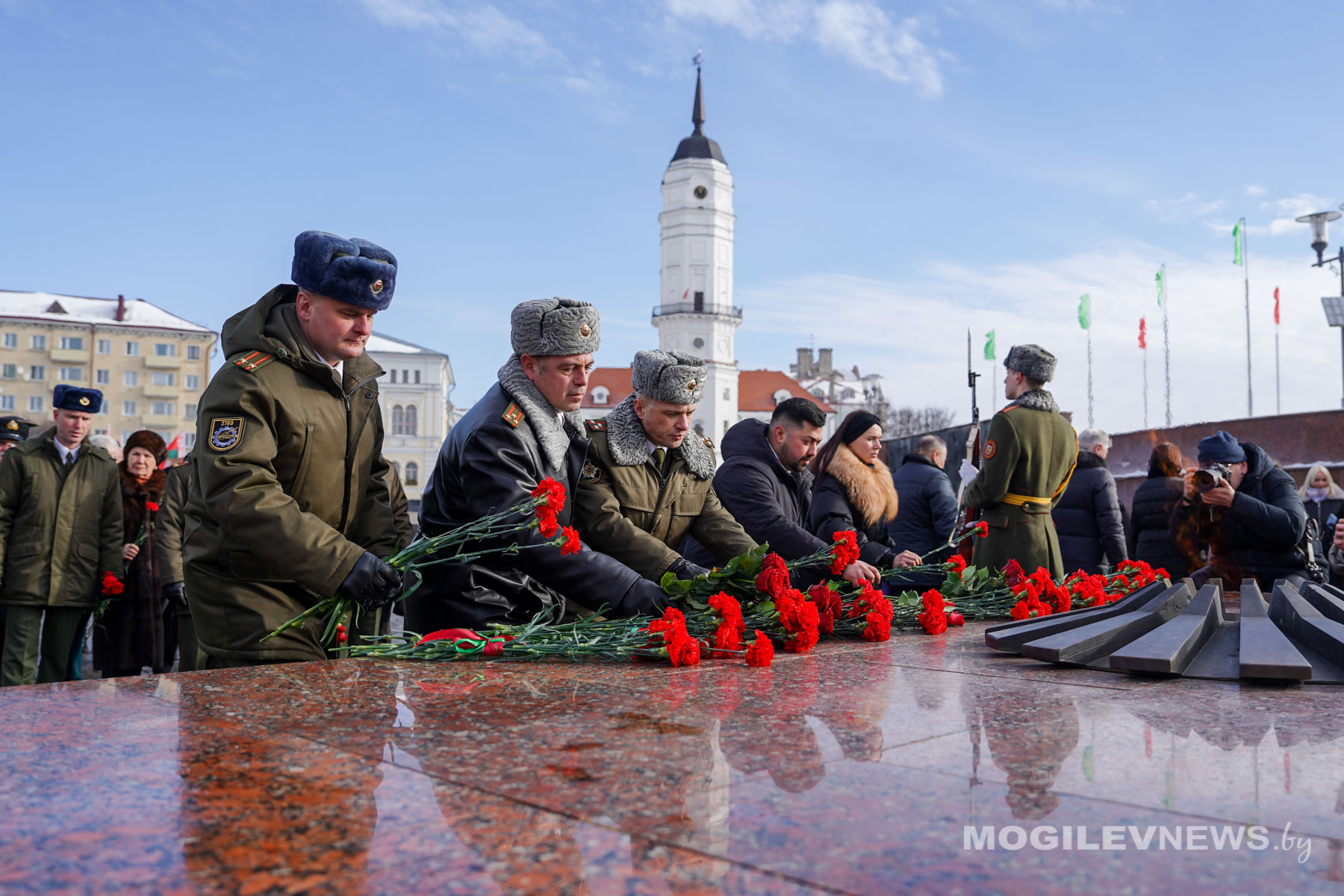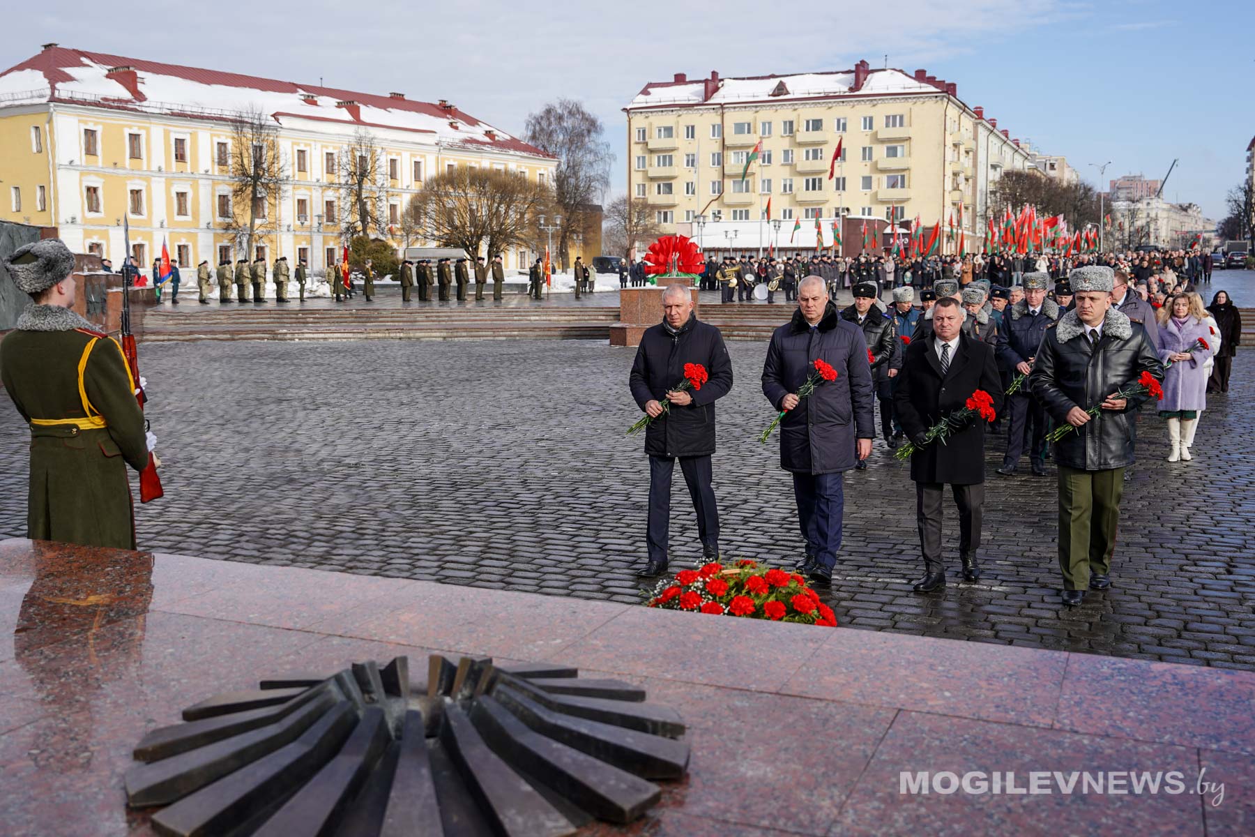 Торжественное возложение цветов, посвященное Дню защитников Отечества и Вооруженных Сил Республики Беларусь, прошло в Могилеве.