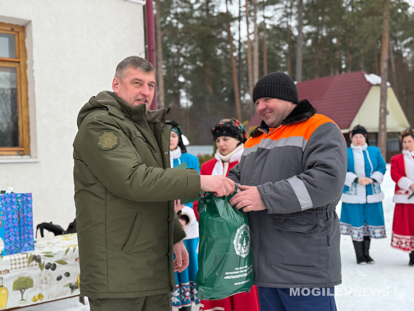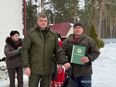 Генеральный директор Могилевского ГПЛХО Владимир Сиротин лично прибыл, чтобы выразить благодарность тем, кто ежедневно стоит на страже главного богатства страны. В торжественной обстановке он вручил грамоту мастеру погрузочно-разгрузочных работ лесопункта «Коммунары» ГЛХУ «Костюковичского лесхоза» Игорю Тихоненко.