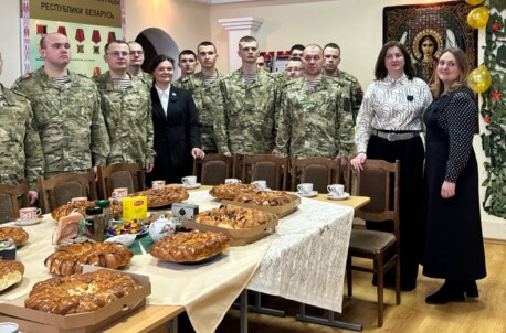 23 февраля прекрасные представительницы первичной организации ОО «Белорусский союз женщин» ОАО «Бабушкина крынка» и председатель Могилевской областной организации ОО «БСЖ» Алла Галушко приехали к военнослужащим 3-го отдельного патрульного батальона войсковой части 6713 с угощениями.