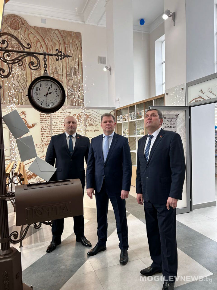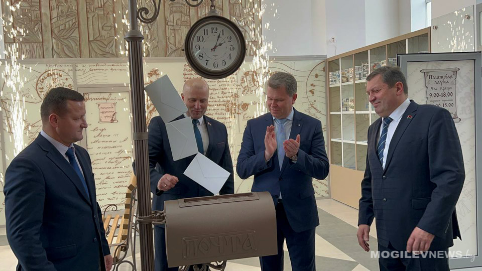Заместитель председателя Могилевского облисполкома Валерий Малашко, председатель Могилевского горисполкома Александр Студнев, председатель Могилевского городского Совета депутатов Максим Гурин, заместитель гендиректора РУП «Белпочта» Вадим Герасименок и директор Могилевского филиала РУП «Белпочта» Александр Бручиков подписали памятные открытки с посланием будущему Могилеву, опустили их в почтовый ящик и тем самым дали старт в работе обновленного главпочтамта.