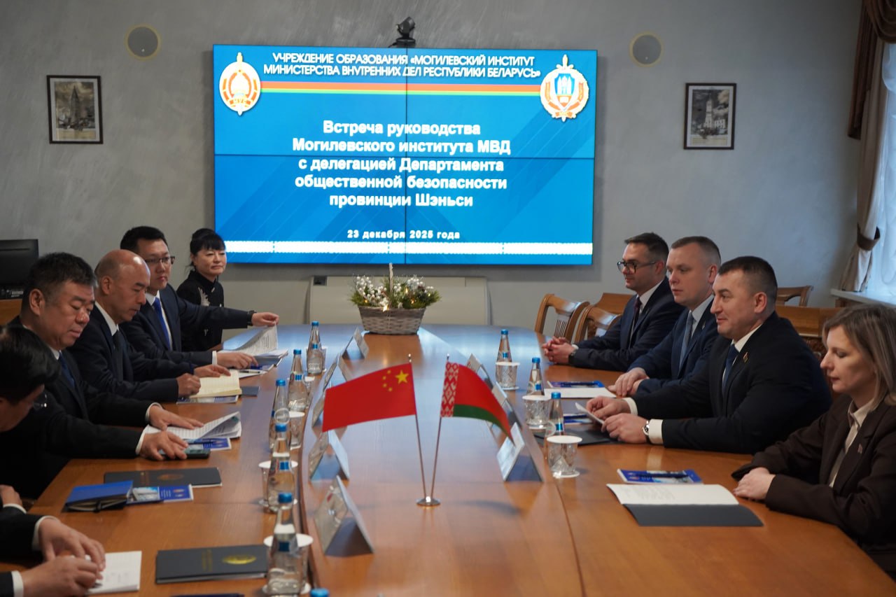 Делегация Департамента общественной безопасности провинции Шэньси Министерства общественной безопасности Китайской Народной Республики 23 декабря посетила Могилевскую область. В управлении внутренних дел региона гостей приветствовал начальник УВД Игорь Щербаченя. Основной темой визита стало развитие практического взаимодействия между правоохранительными органами двух стран.