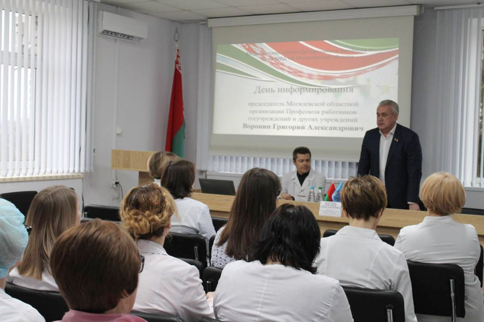 Председатель Могилевской областной организации профсоюза работников госучреждений Григорий Воронин встретился с трудовым коллективом УЗ «Медицинская служба Департамента финансов и тыла МВД Республики Беларусь по Могилевской области». Во время беседы он рассказал о направлениях работы отраслевого профсоюза, акцентировав внимание на защите трудовых и социально-экономических прав членов профсоюза, нормотворческой деятельности, важности укрепления социального партнерства.