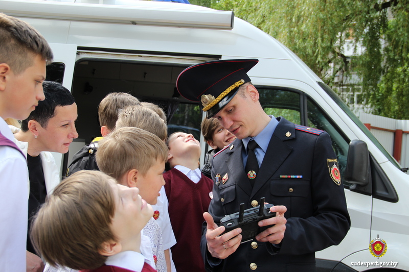 Начальник управления технических экспертиз Дмитрий Зуборев рассказал школьникам о  широком перечне проводимых экспертиз, возможностях современных экспертов и важности их труда в деле раскрытия преступлений.   После этого ребята совместно с экспертом Могилевского межрайонного отдела ГКСЭ Владиславом Суриным «разобрали» чемодан эксперта-криминалиста и узнали о предназначении технических средств и инструментов, находящихся в нем, каждый желающий смог ощутить приличный вес чемодана, с которым эксперт выбывает на место происшествия для его осмотра.