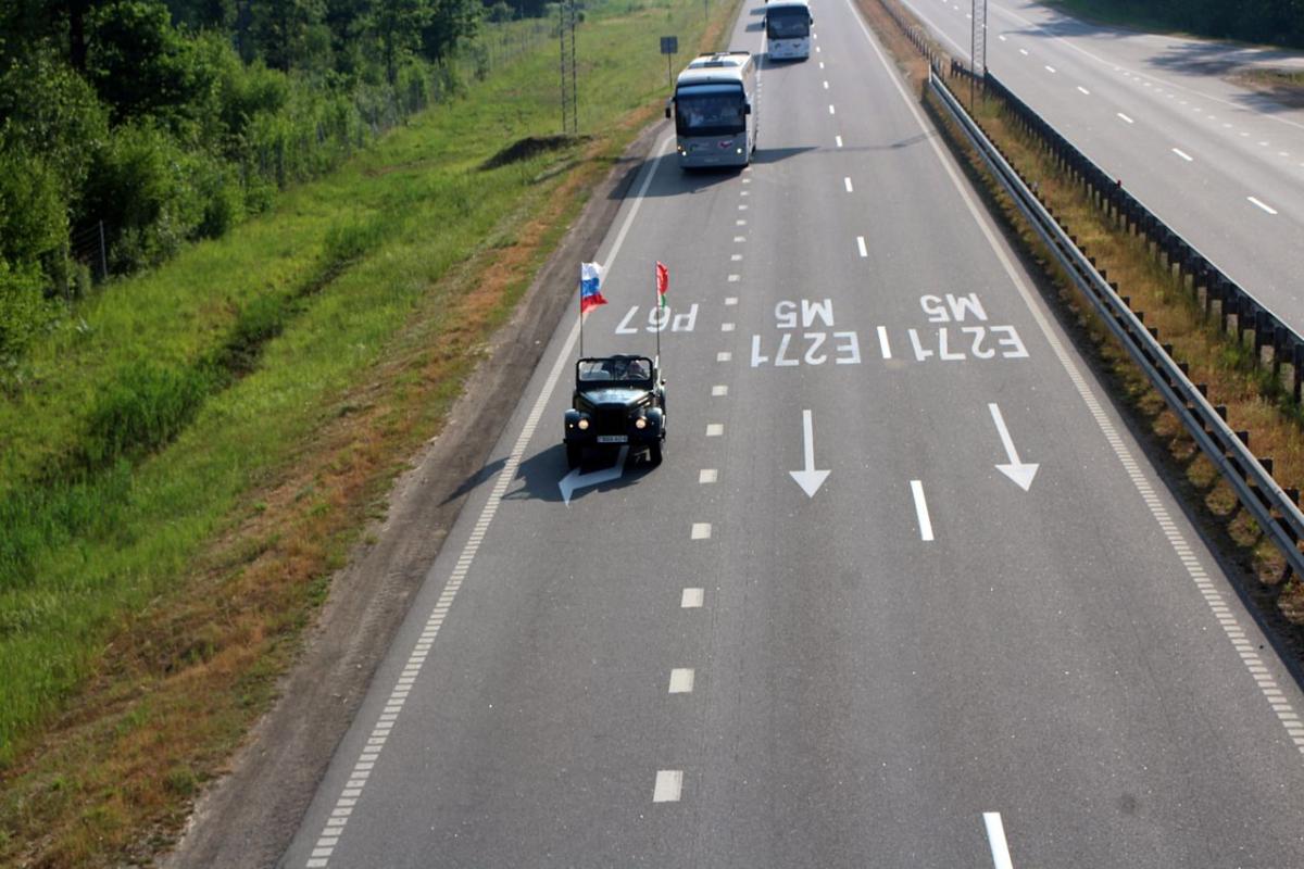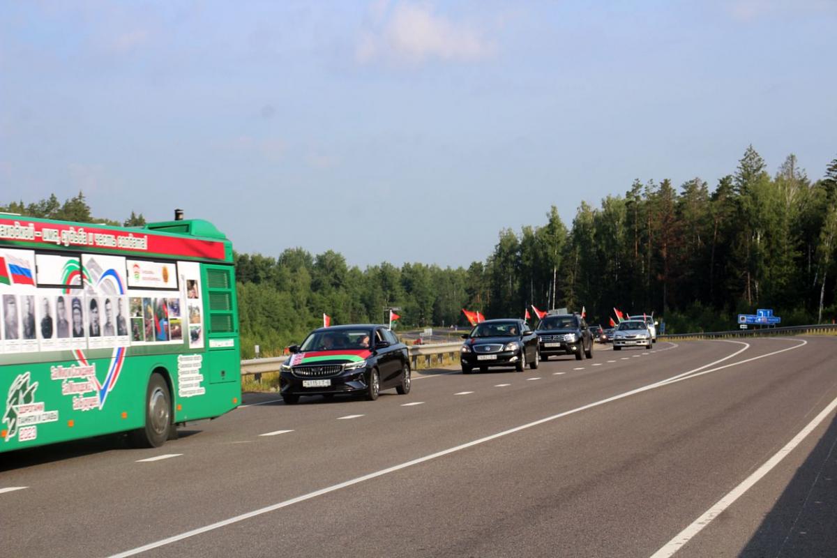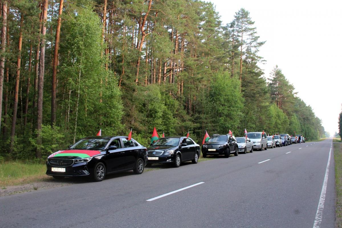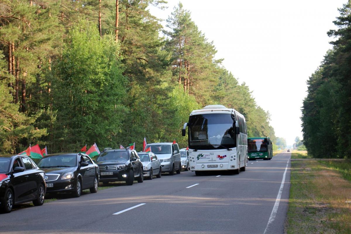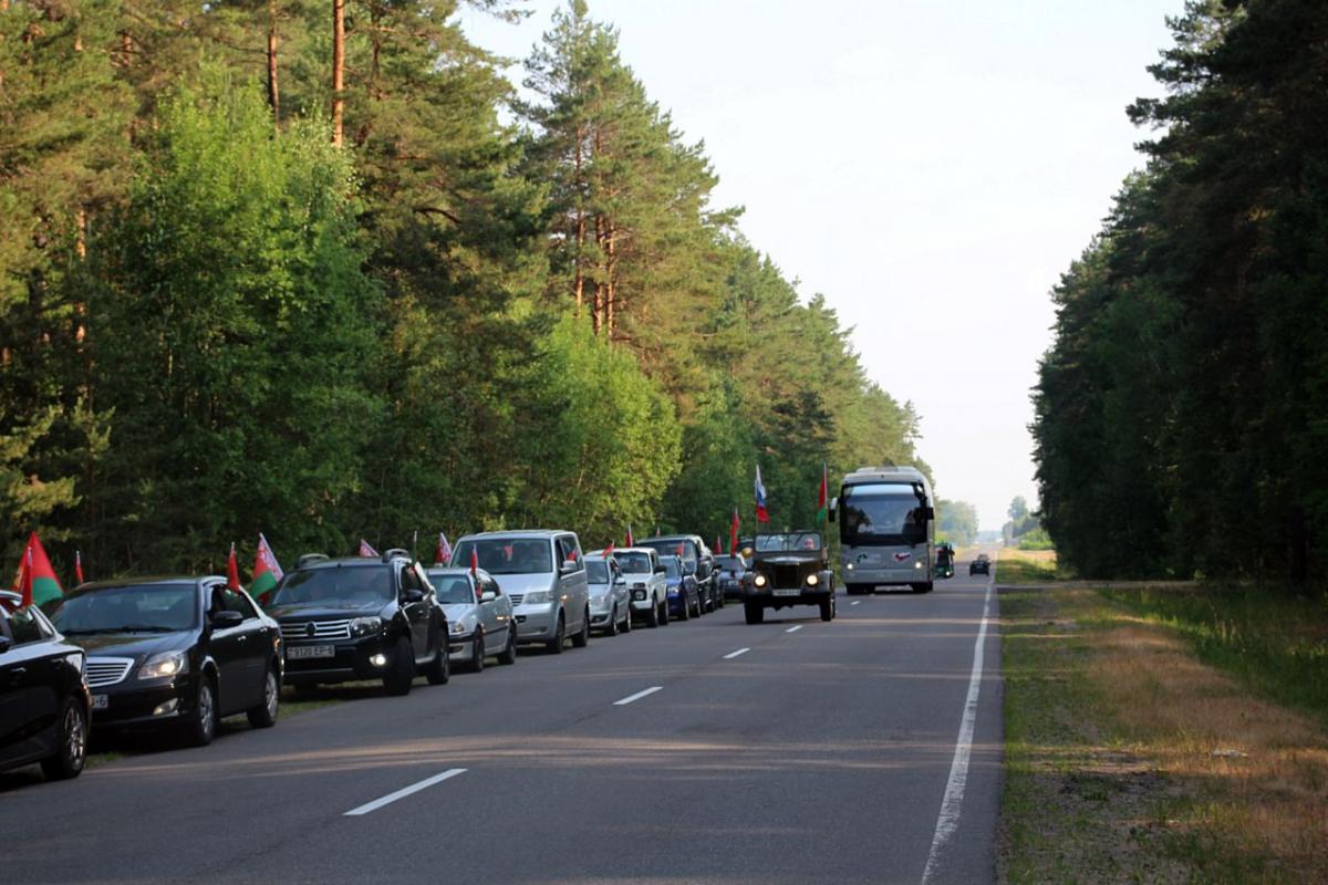 Участников международного молодежного военно-патриотического проекта «Дорогами памяти и славы» 23 июня в Бобруйском районе встречала колонна автомобилей организаций и предприятий Приберезинского края, украшенная государственной символикой. Сообщает tribunapracy.by.