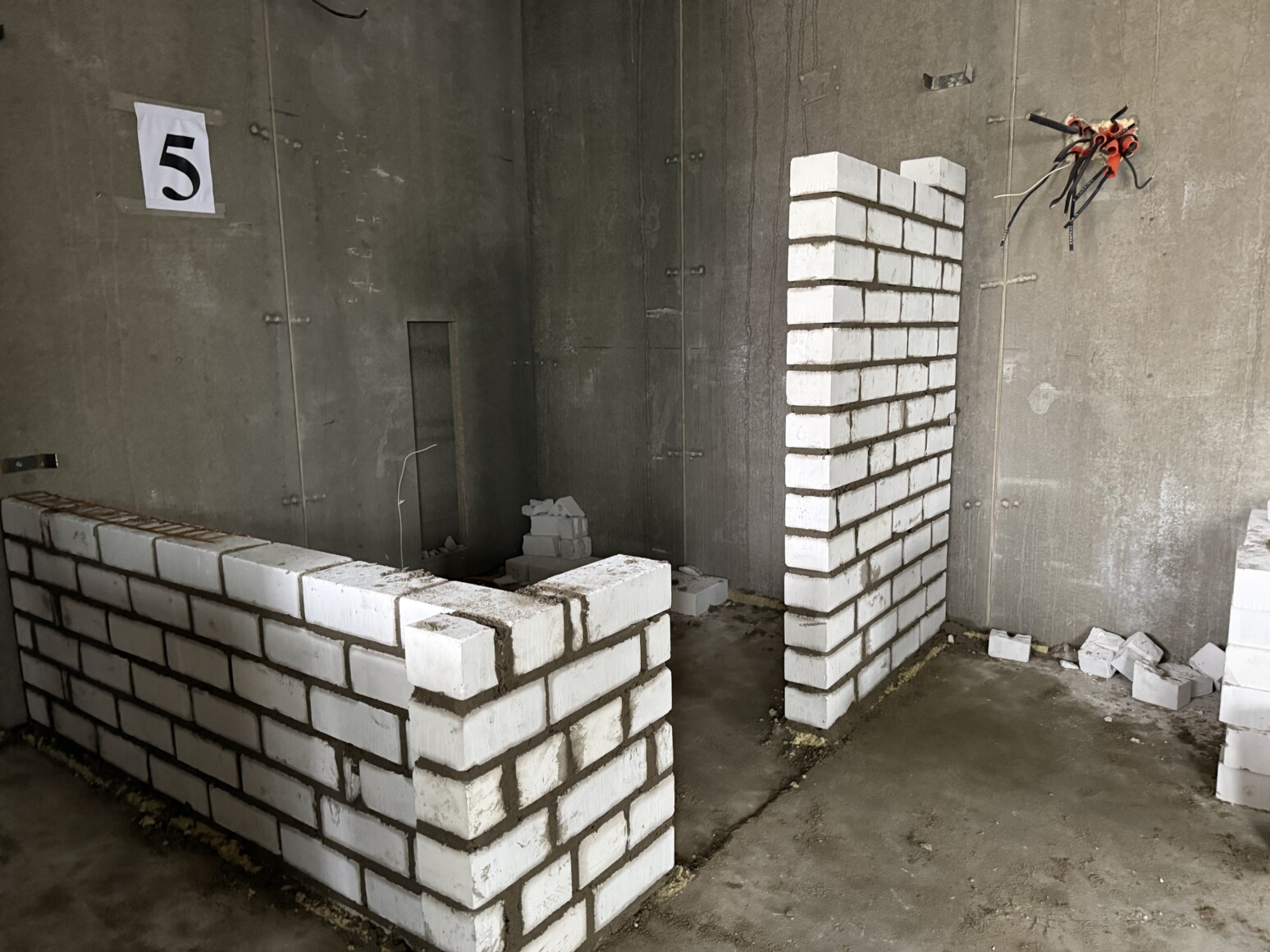 Местом проведения конкурса стала строительная площадка на улице Вишневецкого, где возводят 40-квартирный жилой дом. Всем участникам предстояло за три часа возвести перегородку из силикатного кирпича.