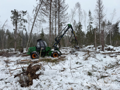 — Сразу за Днепром, теперь уже перед Днепром, — говорит машинист, окидывая взглядом делянку, — разрабатываем, справляемся потихоньку. Этот участок болотный. Благодаря морозам сейчас мы можем здесь работать. Но добавилось и другое испытание — снежный циклон «Улли» оставил после себя много снега.