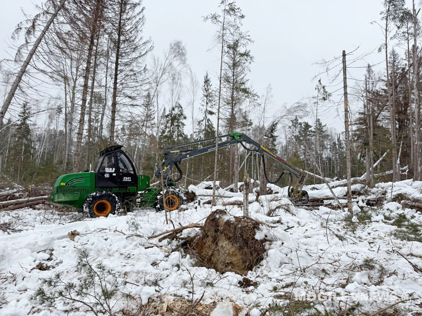— Сразу за Днепром, теперь уже перед Днепром, — говорит машинист, окидывая взглядом делянку, — разрабатываем, справляемся потихоньку. Этот участок болотный. Благодаря морозам сейчас мы можем здесь работать. Но добавилось и другое испытание — снежный циклон «Улли» оставил после себя много снега.