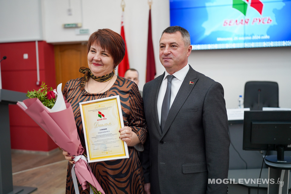 За личный вклад в развитие Республиканского общественного объединения «Белая Русь», проявленные инициативность и ответственность при выполнении уставных задач Почетной грамотой Республиканского общественного объединения «Белая Русь» награждены член Президиума Совета Климовичской районной организации РОО «Белая Русь» Наталья Осмоловская (до недавнего времени на протяжении 2-х лет возглавляла данную организацию) и председатель Горецкой районной организации РОО «Белая Русь», председатель районного Совета депутатов Максим Потапенко.