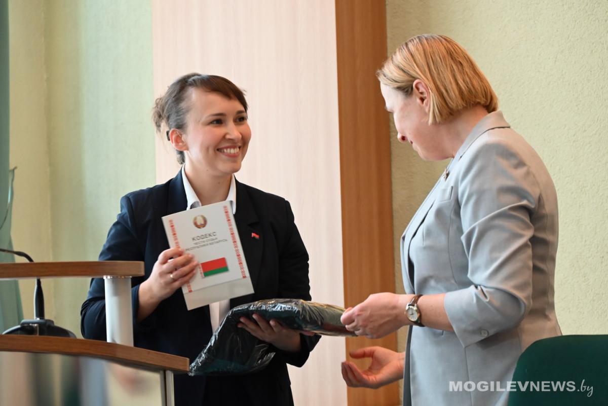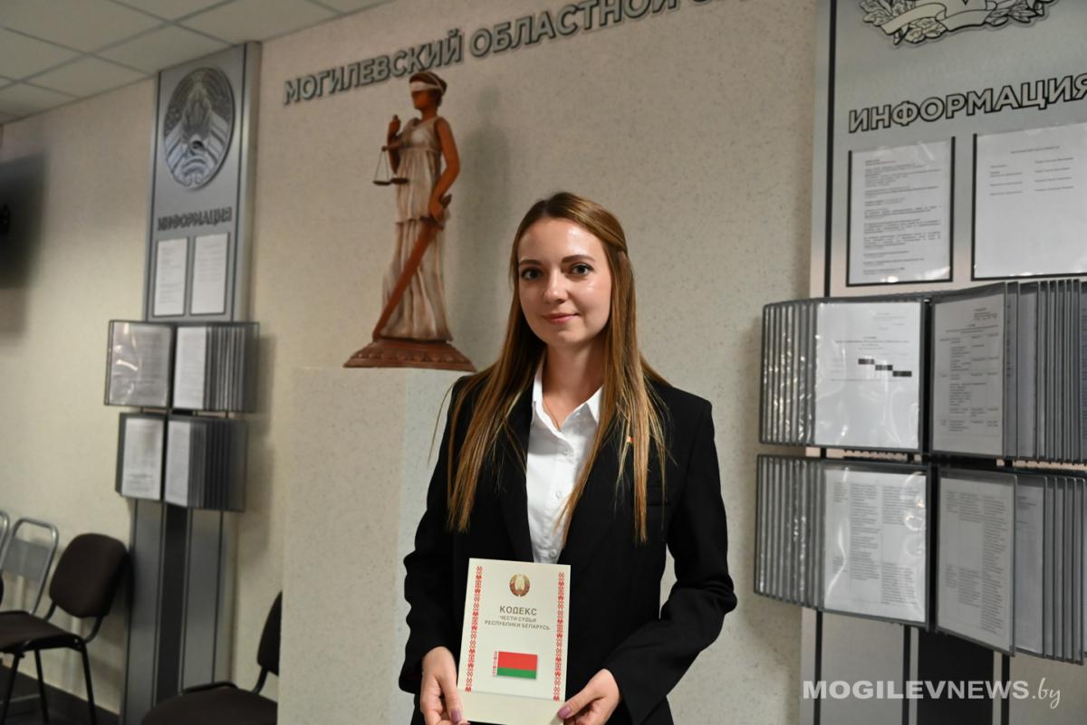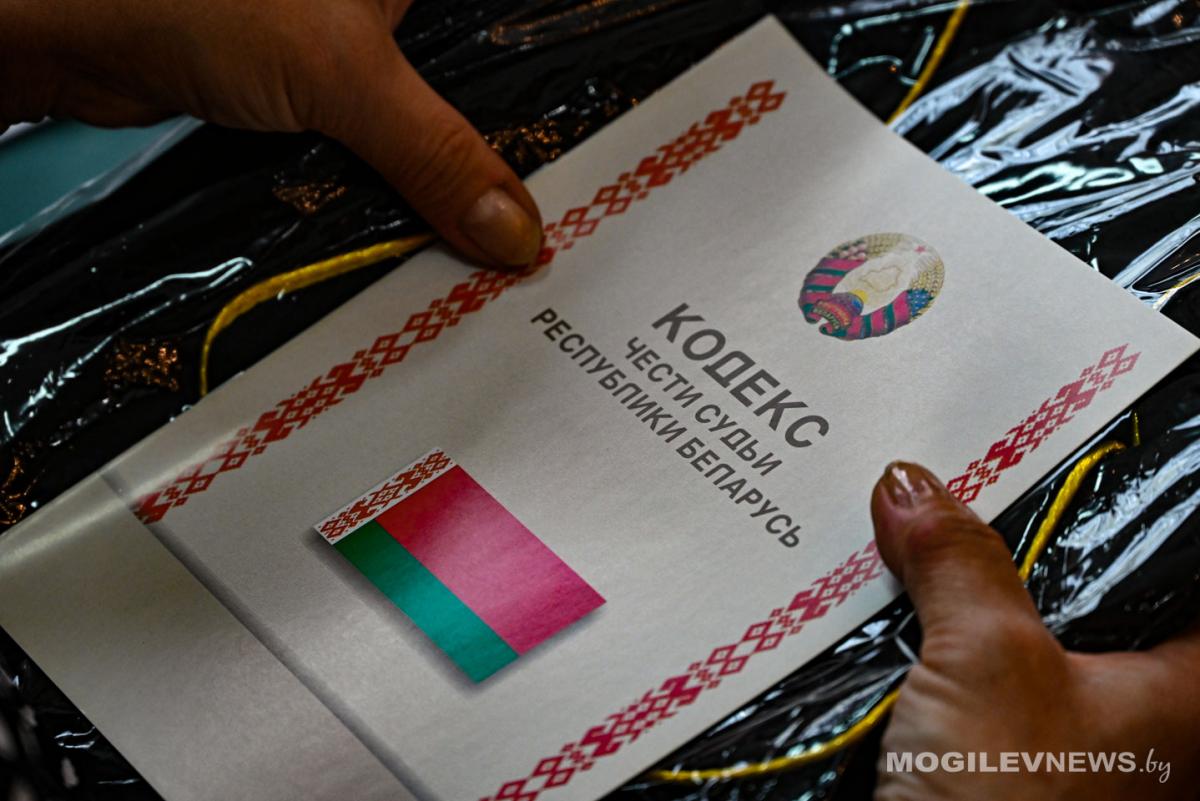 После приведения судей к присяге председатель Могилевского областного суда Светлана Буряко вручила новым коллегам мантии, Кодекс чести судьи Республики Беларусь и выразила искренние поздравления в связи с назначением на должность.