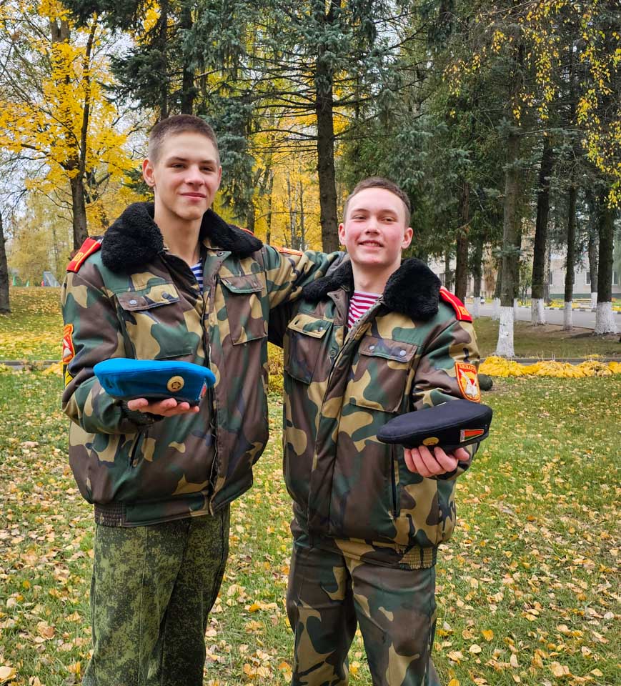 На церемонии вручения беретов директор училища полковник Юрий Аркадьевич Гришанов, сам проходивший аналогичные испытания в годы службы в десанте, поздравил ребят с успешным преодолением заданий. Голубой берет был вручен Даниилу Рыковскому, черный — Никите Кляусову.