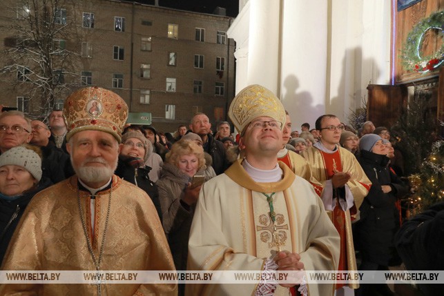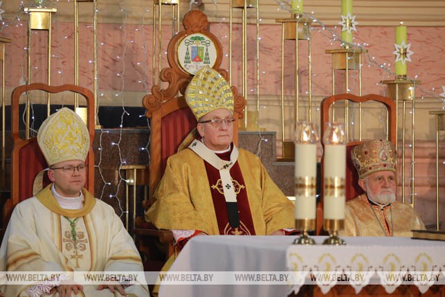 Митрополит Минско-Могилевский архиепископ Тадеуш Кондрусевич вечером 24 декабря отслужил праздничную мессу в кафедральном костеле Воскрешения Пресвятой Девы Марии и святого Станислава в Могилеве.