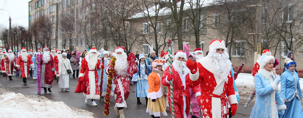25 декабря, жители и гости Чаусского района стали уастниками свидетелями шествия Дедов Морозов и Снегурочек. Новогодняя процессия с музыкой и танцами прошла от городского фонтана к площади, где установлена главная елка райцентра.