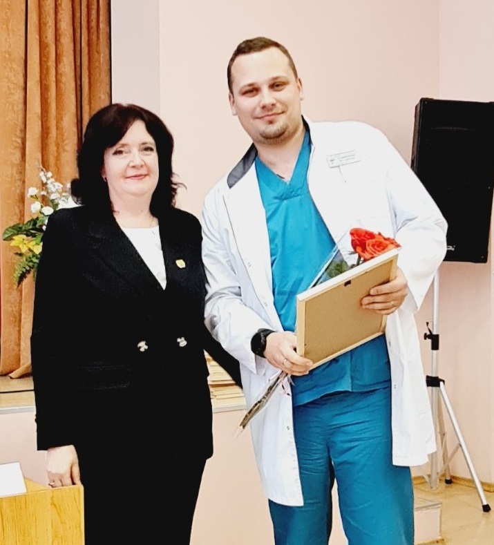 В завершении прошло награждение лучших сотрудников больницы почетными грамотами и благодарностями от главного управления по здравоохранению Могоблисполкома и профсоюзов. За плодотворный труд в системе здравоохранения и активную работу по укреплению профсоюзного движения нагрудный знак «115 лет Белорусскому профсоюзу работников здравоохранения» Виктор Суслов вручил врачу-хирургу Игорю Савостенко, который много лет занимал должность заместителя главного врача по хирургической помощи.
