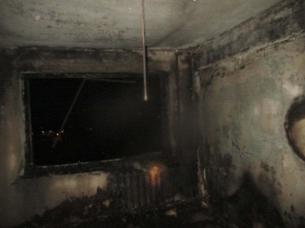 Огнем уничтожено имущество в спальной комнате, закопчены стены и имущество в квартире. Также из-за сильного задымления создалась угроза жильцам 5-го этажа — спасатели эвакуировали двух человек.