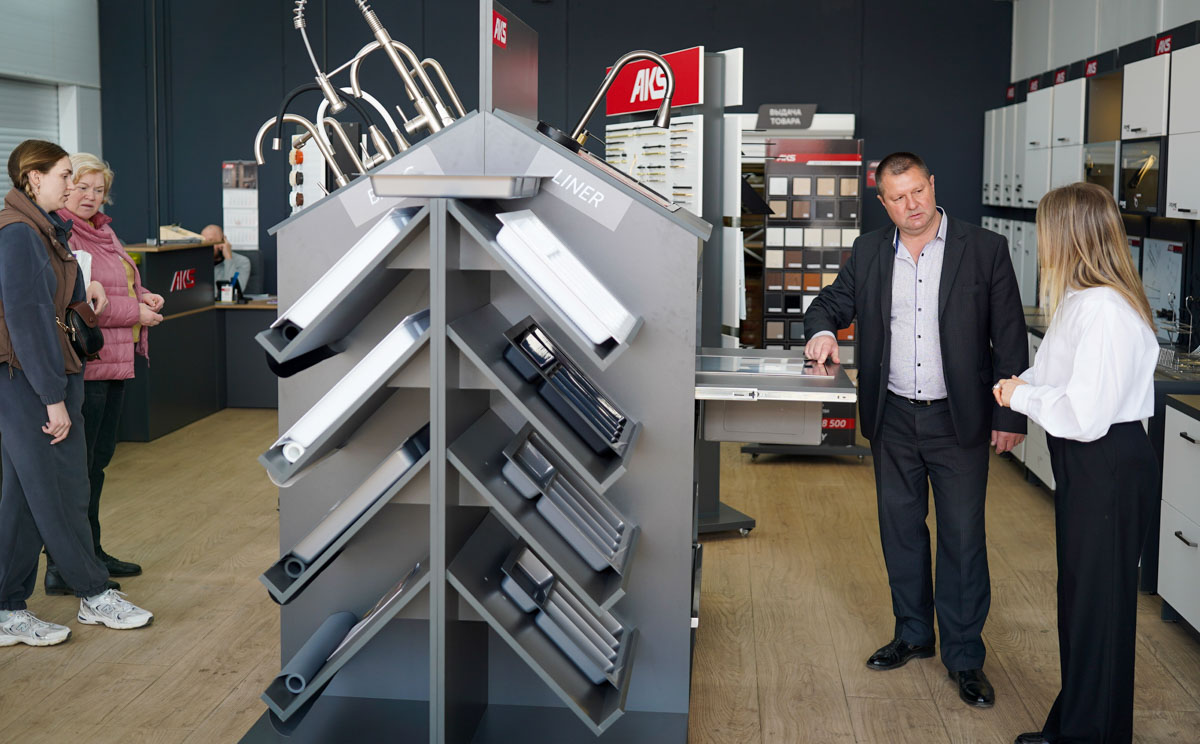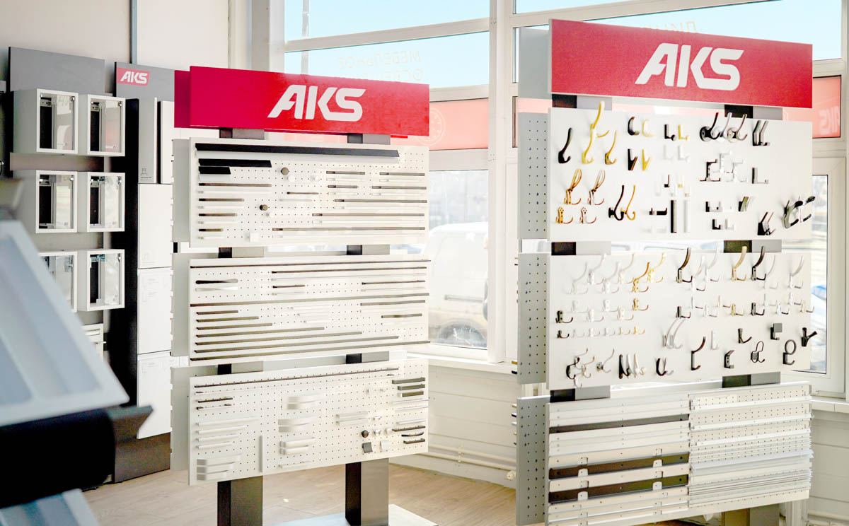по торговому объекту на ул. Габровской, 11б. Но буквально недавно AKS отпраздновал новоселье и распахнул двери шоурума с обновленной экспозицией, на которой (за счет детально продуманного расположения стендов и увеличенной площади) представлено еще больше мебельной фурнитуры и комплектующих, в том числе актуальных новинок.