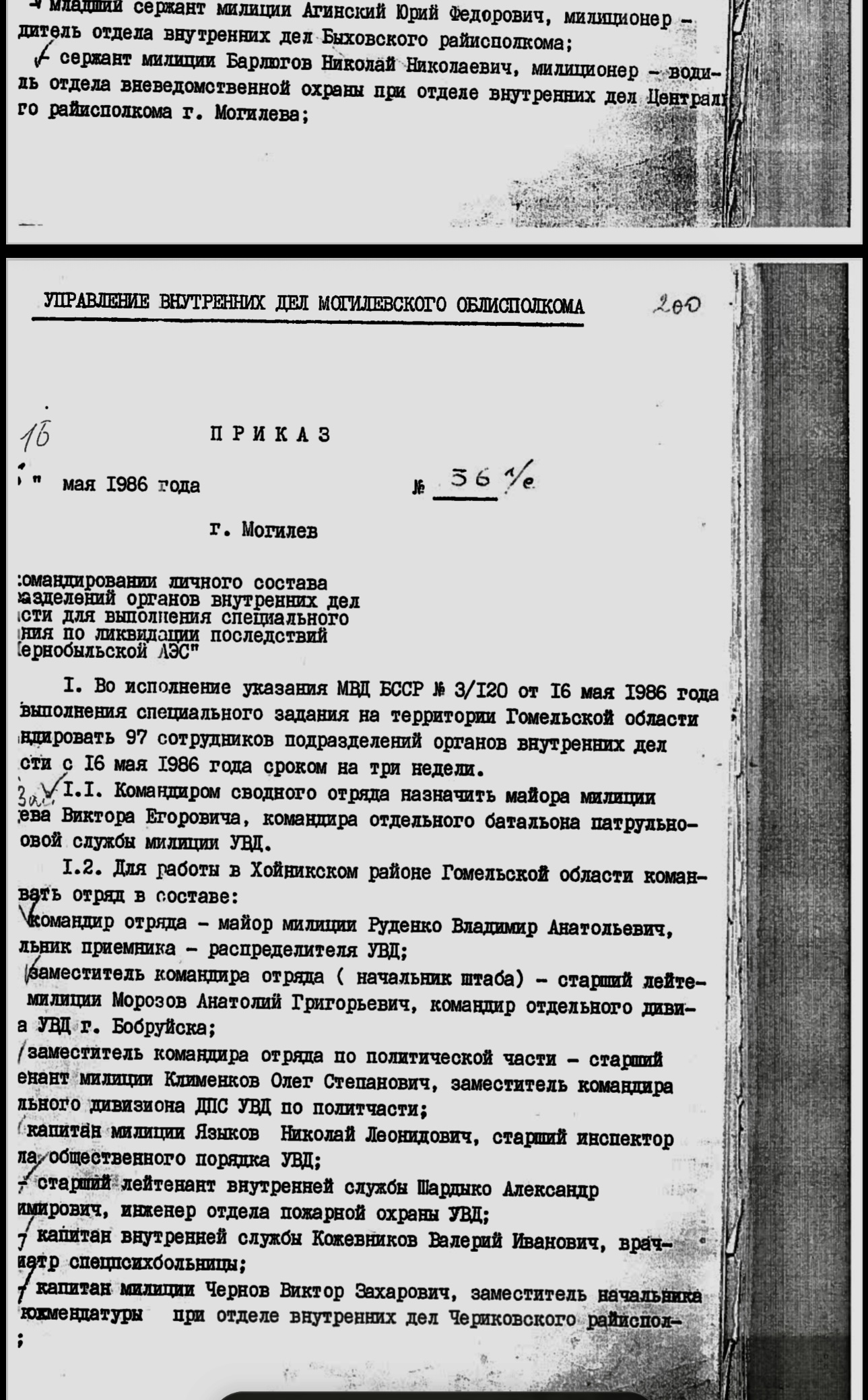 Среди тех, кто получил вызов в УВД Могилева, был и Николай Барлюгов — милиционер-водитель отдела вневедомственной охраны при отделе внутренних дел Центрального райисполкома. Разговор занял минуту: «Едете в командировку в тридцатикилометровую зону».