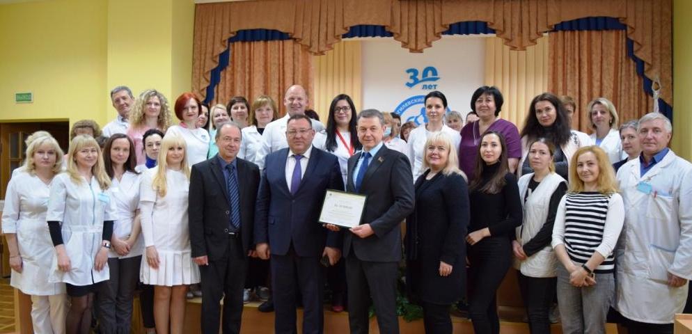 В завершении встречи Вячеслав Шило вручил главному врачу Могилевского областного лечебно-диагностического центра Андрею Нипатруку сертификат на 10 тысяч рублей, предназначенные для приобретения оборудования, которое будет использовано при реконструкции спортивного зала в учреждении здравоохранения.