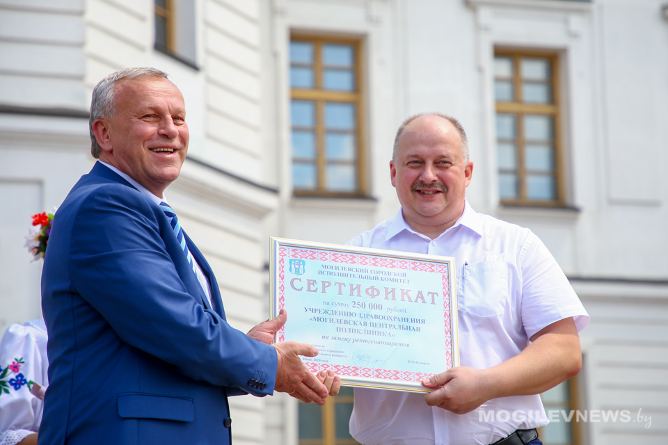 Во время мероприятия Владимир Цумарев передал городским медучреждениям сертификат на сумму 250 тысяч рублей для замены рентген-аппаратов в учреждениях здравоохранения города и ключи от автомобилей скорой медицинской помощи.