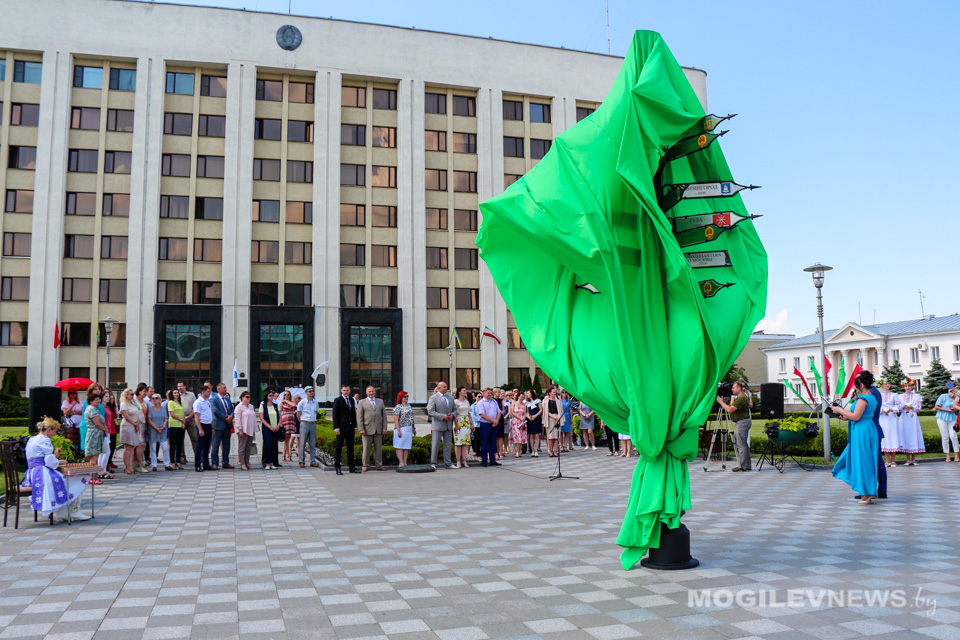Торжественная церемония открытия арт-объекта «Дрэва сяброўства» прошла на площадке возле Могилевского горисполкома в рамках мероприятий, посвященных празднованию Дня города Могилева.