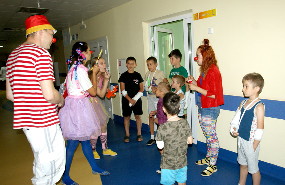 — Подобные визиты, а клоуны к нам приходят ежемесячно, очень положительно влияют на психологическое состояние ребенка. У нас таким гостям рады всегда,— рассказала инструктор-валеолог МОДБ Светлана Юрченко. — Есть статистически подтвержденные данные о том, что больничная клоунада обладает целительным эффектом. За счет отвлечения многие этапы лечения проходят легче и быстрее.