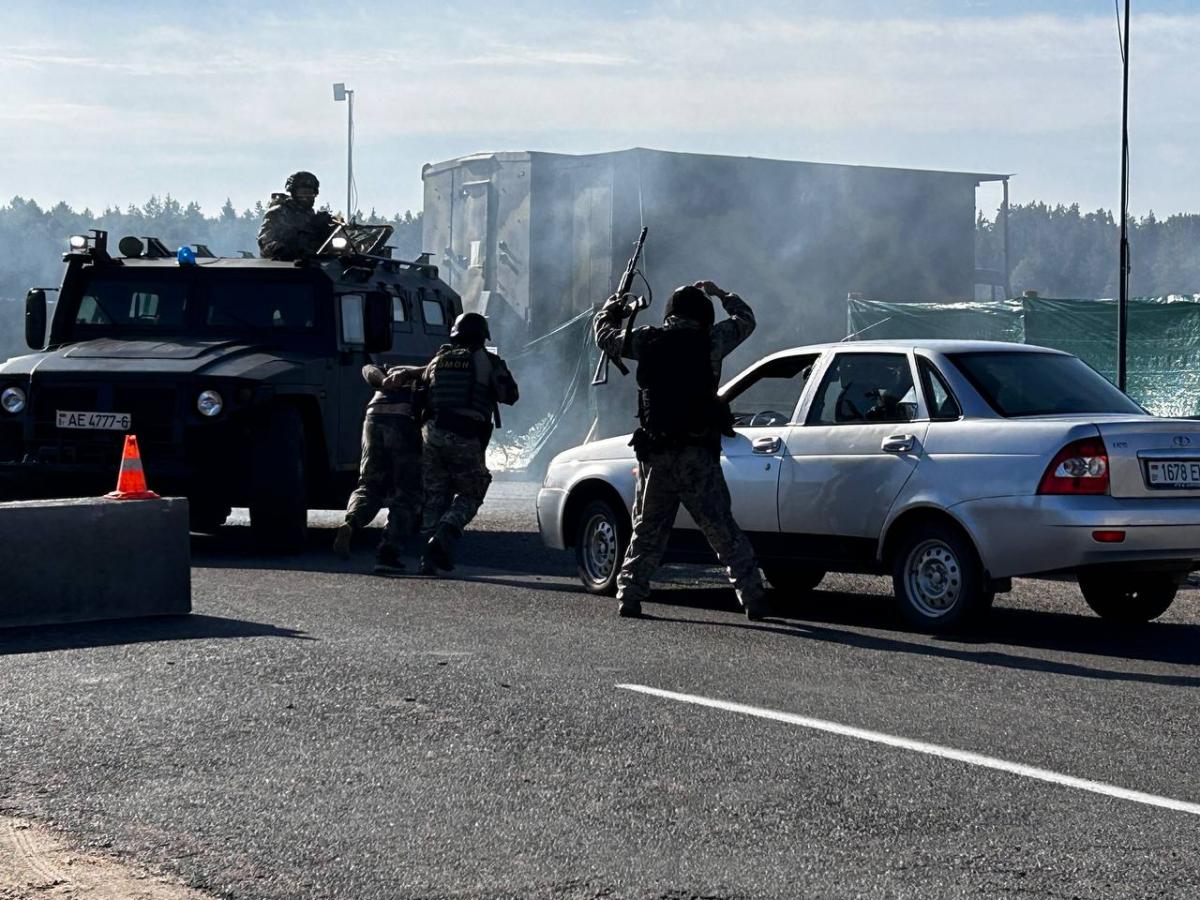 Следующим пунктом учений стала отработка взаимодействий сотрудников Осиповичского РОВД с подразделениями территориальных войск на КПП у въезда в город.