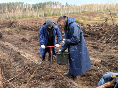 Более 200 представителей национального профцентра и отраслевых объединений вышли на подготовленные площадки, чтобы заложить новый массив. Всего на двух участках — в Могилевском и Чаусском лесхозах — планируется высадить около 50 тысяч саженцев. Только в Заходском лесничестве сегодня появилось 32 тысячи молодых елей и сосен.