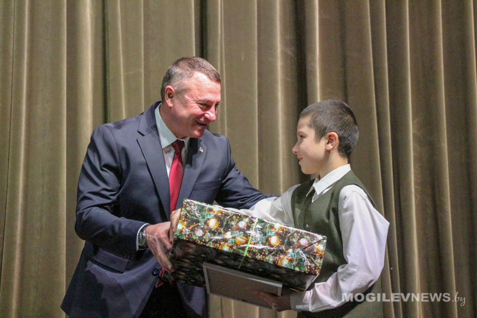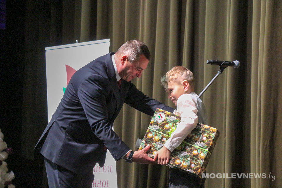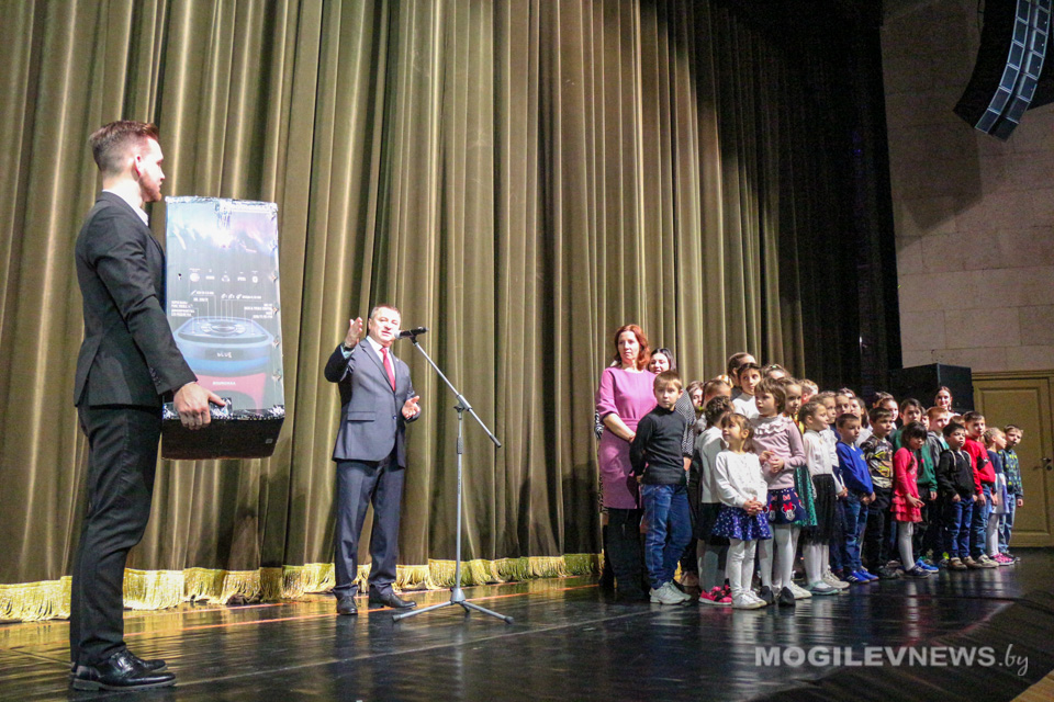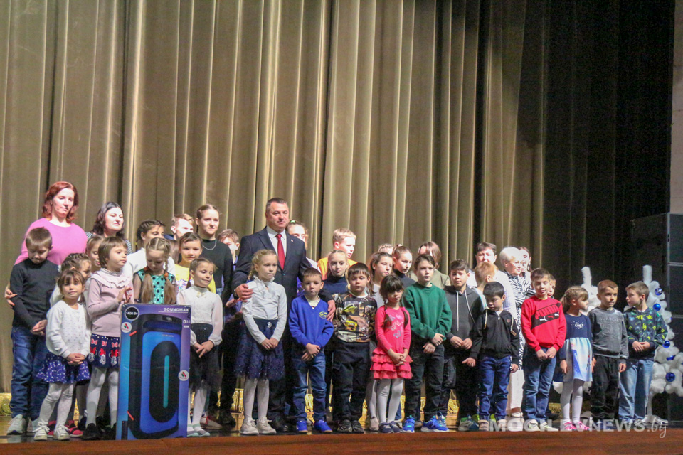 Председатель Председатель Могилевской областной организации РОО «Белая Русь» Александр Горошкин вручил детям подарок – интерактивную колонку, а также сладости.