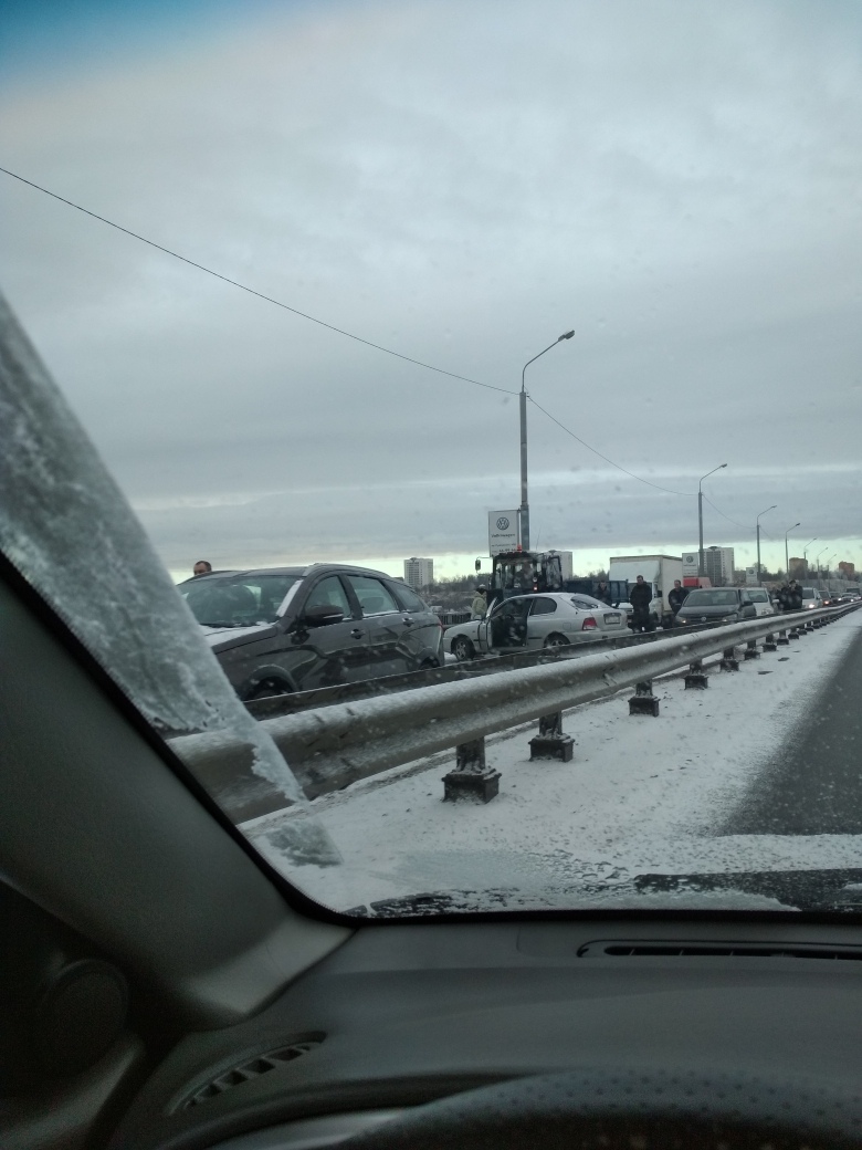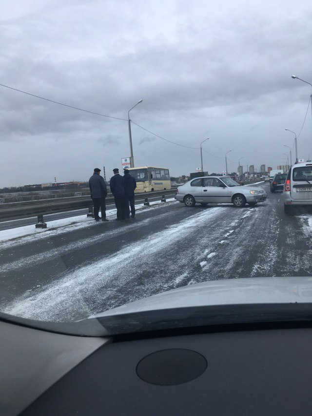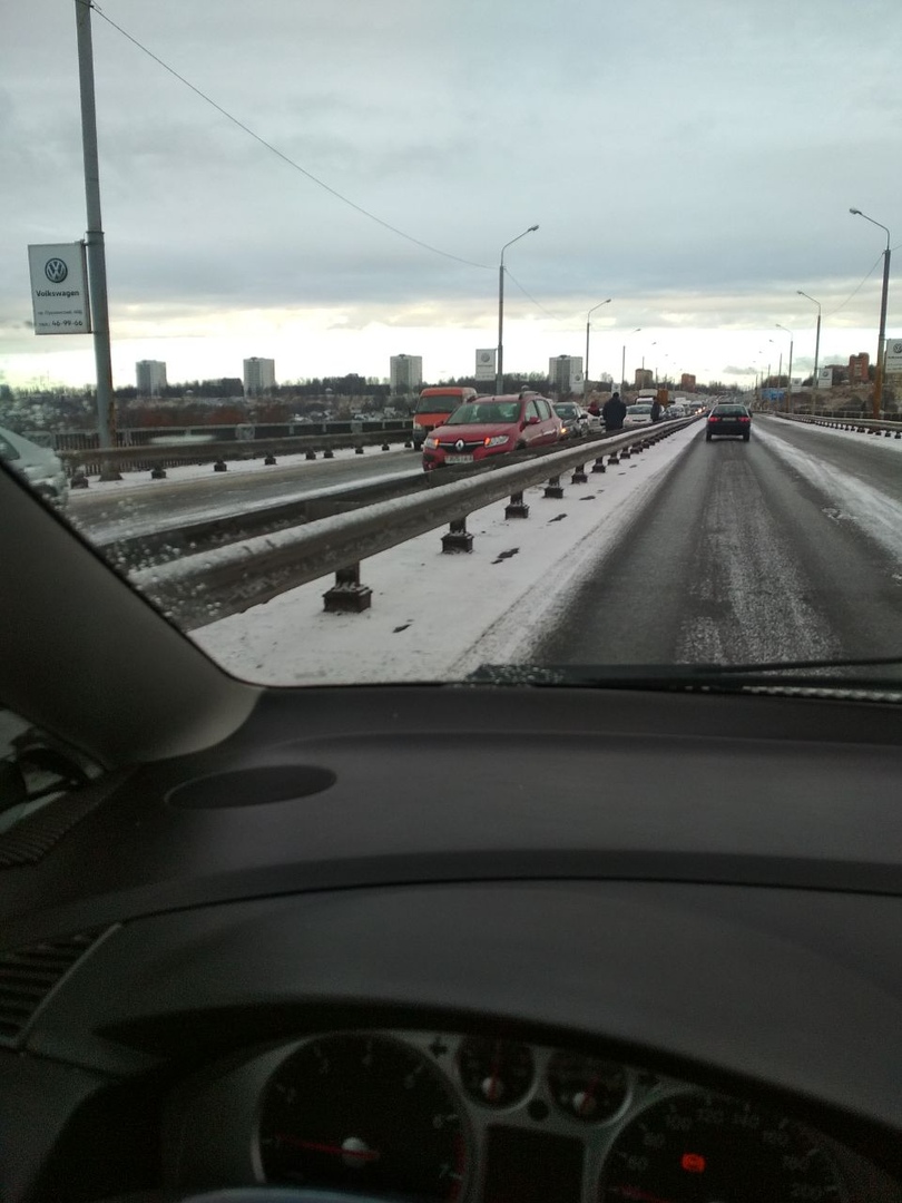 — Водитель автомобиля «Хундай», двигаясь на мосту по крайней левой полосе, не справился с управлением, в результате автомобиль развернуло на проезжей части, — рассказали в ГАИ. — Ехавший следом на «Рено» водитель во избежание столкновения попытался объехать слева перегородивший дорогу автомобиль, однако не учел боковой интервал и зацепил бампер «Хундая».