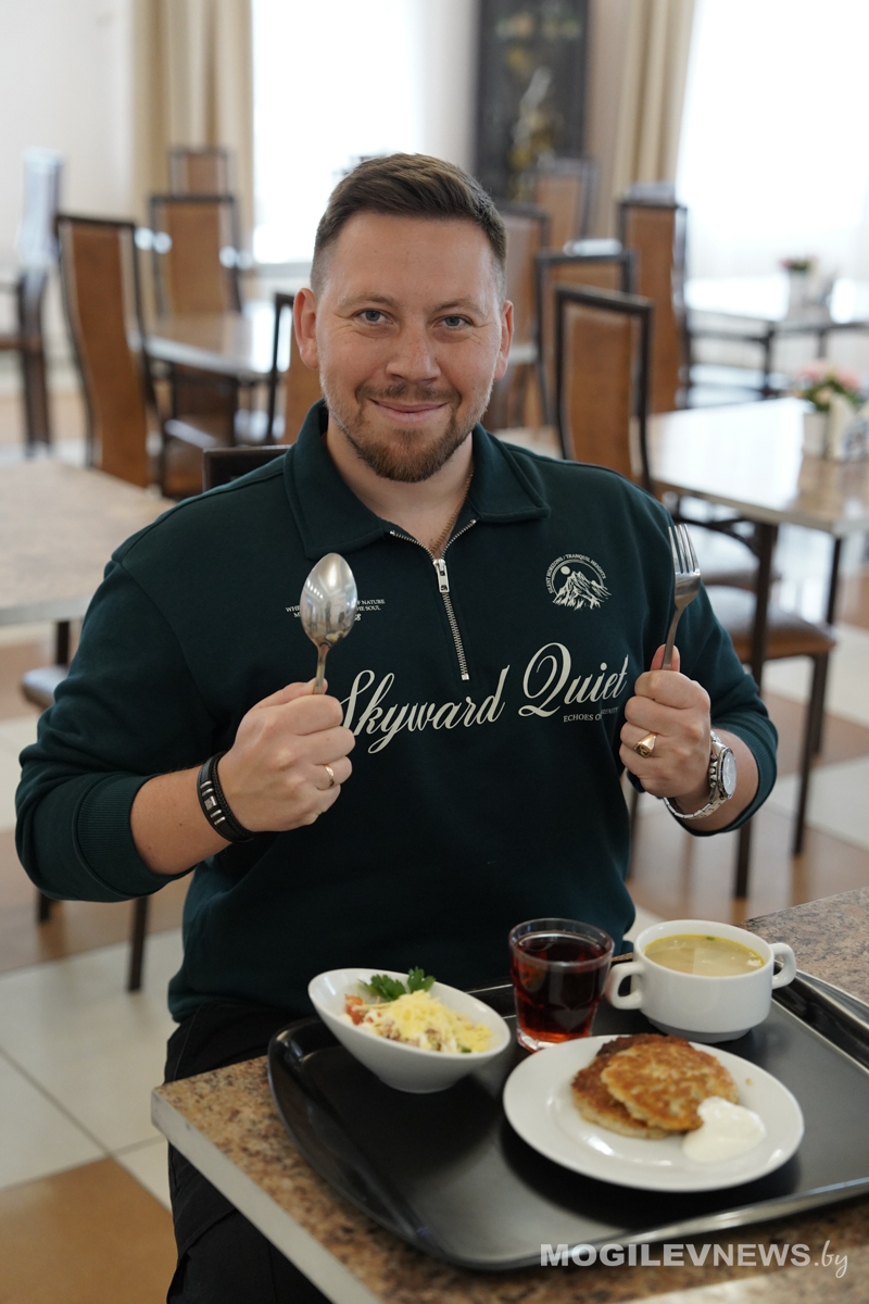 Разнообразие в меню здесь впечатляет всегда, но сегодня ассортимент был особенно богатым. Каких только блюд не было представлено! Но мы, следуя духу акции, выбрали традиционную классику. Первое блюдо – щи из кислой капусты с мясом и сметаной. Это та самая история, где «ложка стоит»: наваристый, с приятной, бодрящей кислинкой, с мягким мясом и щедрой порцией сметаны – такой суп согревает и настраивает на сытный лад. На второе – легендарный салат «Столичный», знакомый нам с детства: нежный, с правильным балансом мяса, огурчика и горошка. А на горячее – гвоздь программы, визитная карточка страны: белорусские драники, щедро политые сметаной от «Молочных горок». Это не просто драники, это совершенство! Такое сочетание не купить в обычном кафе – это чистый, искренний и родной вкус. Запивали мы это великолепие классическим компотом, который идеально дополнил обед, напомнив вкус из далекого детства.