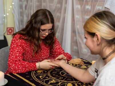 Особой популярностью пользовалась библиотека предсказаний «Выбор Вселенной». Таинственность создавали драпированная ткань на книжных стеллажах, свечи и приглушенный свет. Гадание на картах Таро вызвало интерес желающих узнать о своем будущем и получить советы по волнующим проблемам.