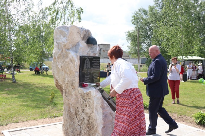 Возложение цветов к памятному знаку земляку, ветерану Великой Отечественной войны, почётному учителю БССР Сергею Аксенову положило начало мероприятию.