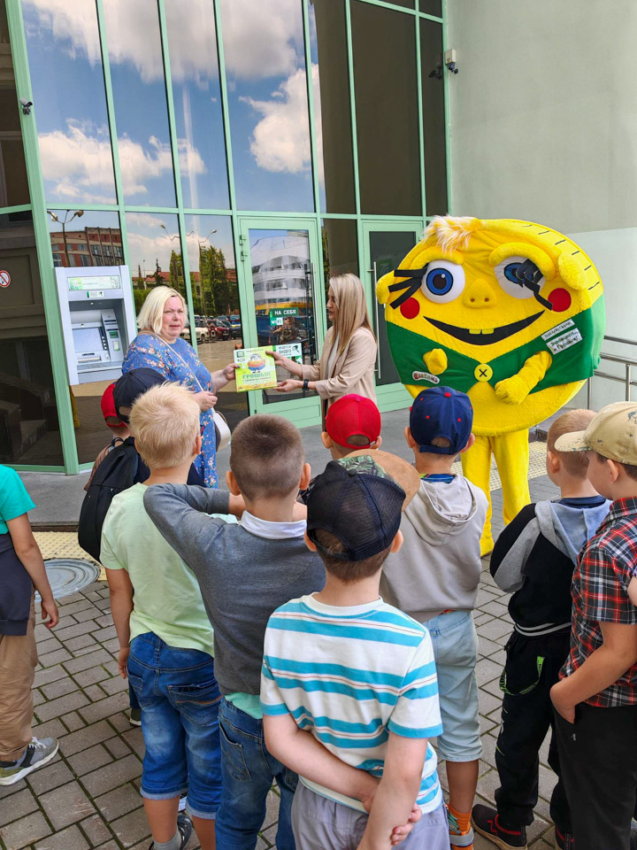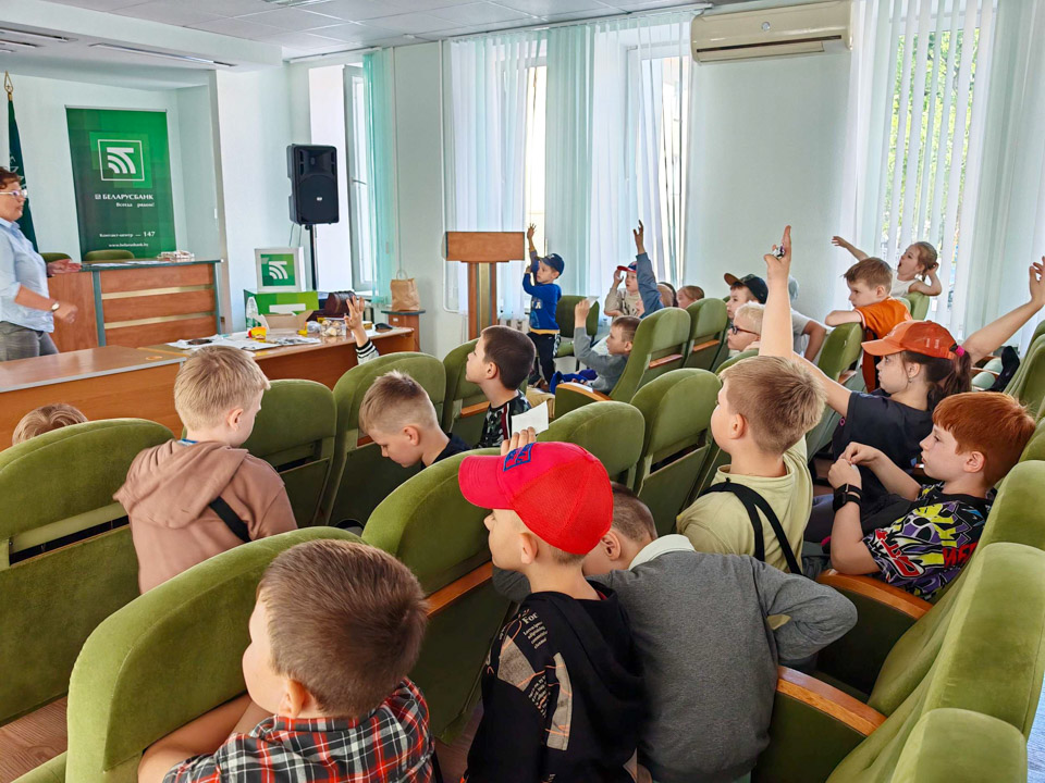 В этот раз в гости к банку пришли воспитанники оздоровительного летнего школьного лагеря «Созвездие» (СШ №1 г. Могилева). От опытных банкиров ребята узнали, как и когда появились деньги, в игровой форме проследили всю эволюцию денег и пополнили свой словарный запас новыми финансовыми определениями.