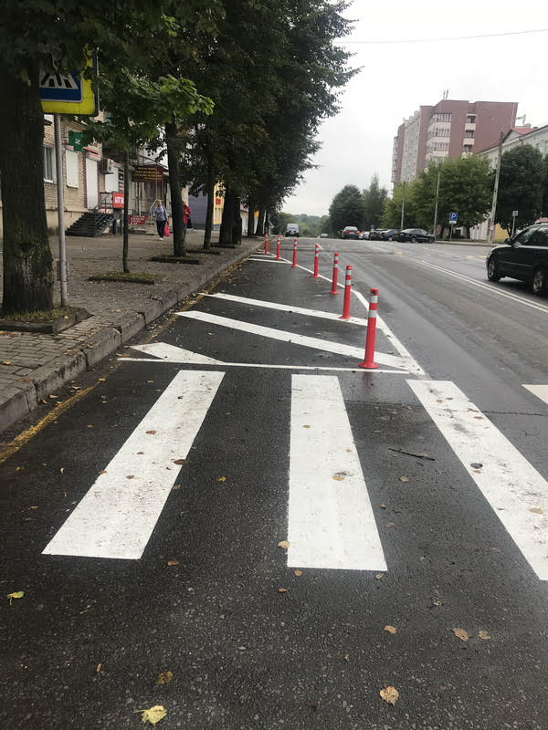 — Для обеспечения безопасности движения пешеходов вблизи второго нерегулируемого пешеходного перехода установлены сигнальные столбики, а также дорожные знаки 1.18.2 «Сужение дороги» и 4.2.2 «Объезд препятствия слева», — отметили в ГАИ.