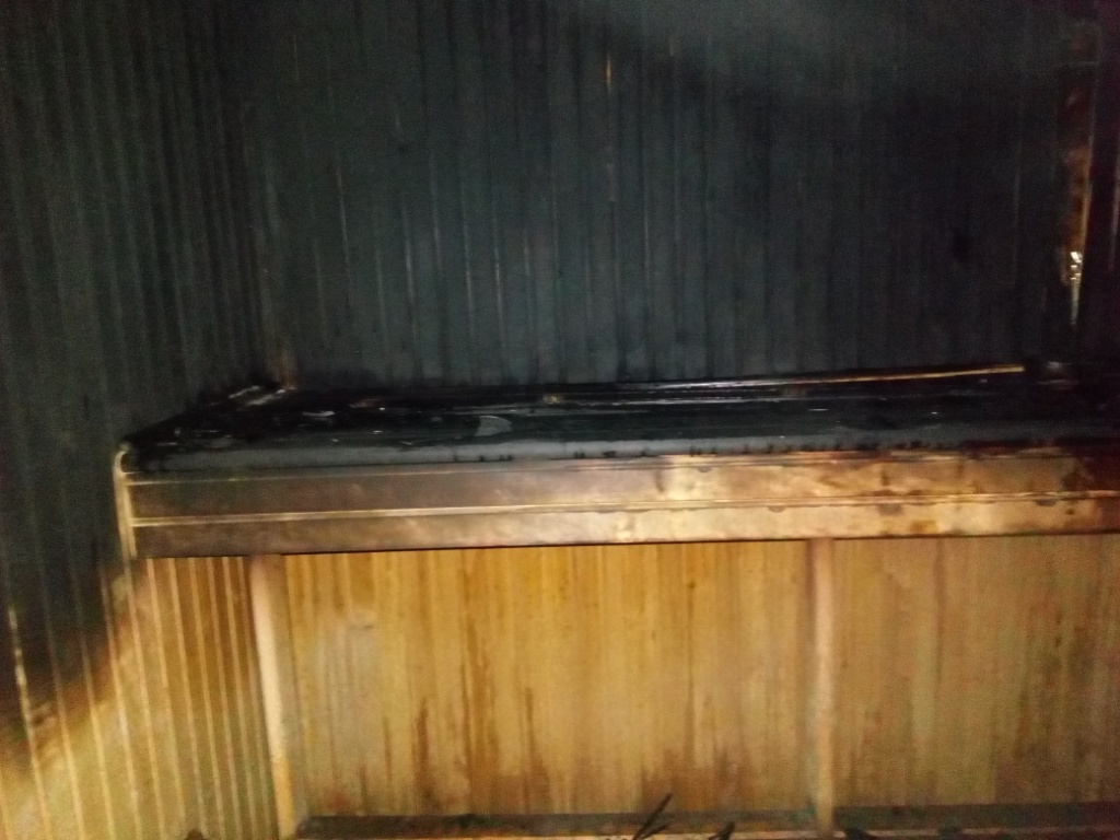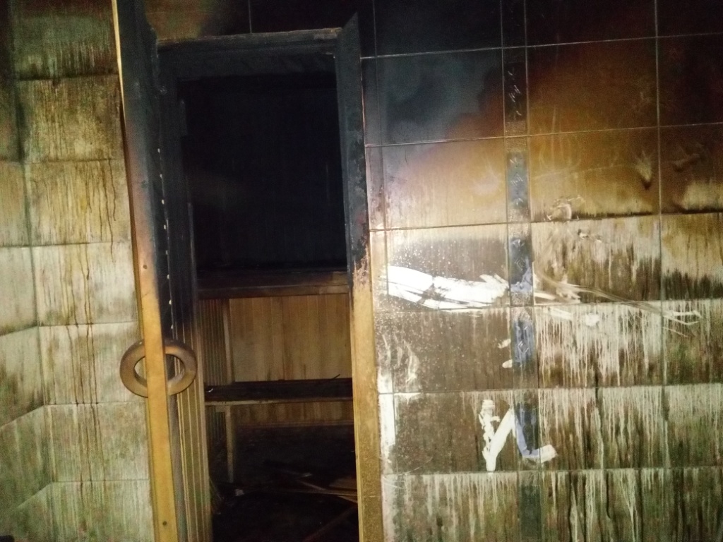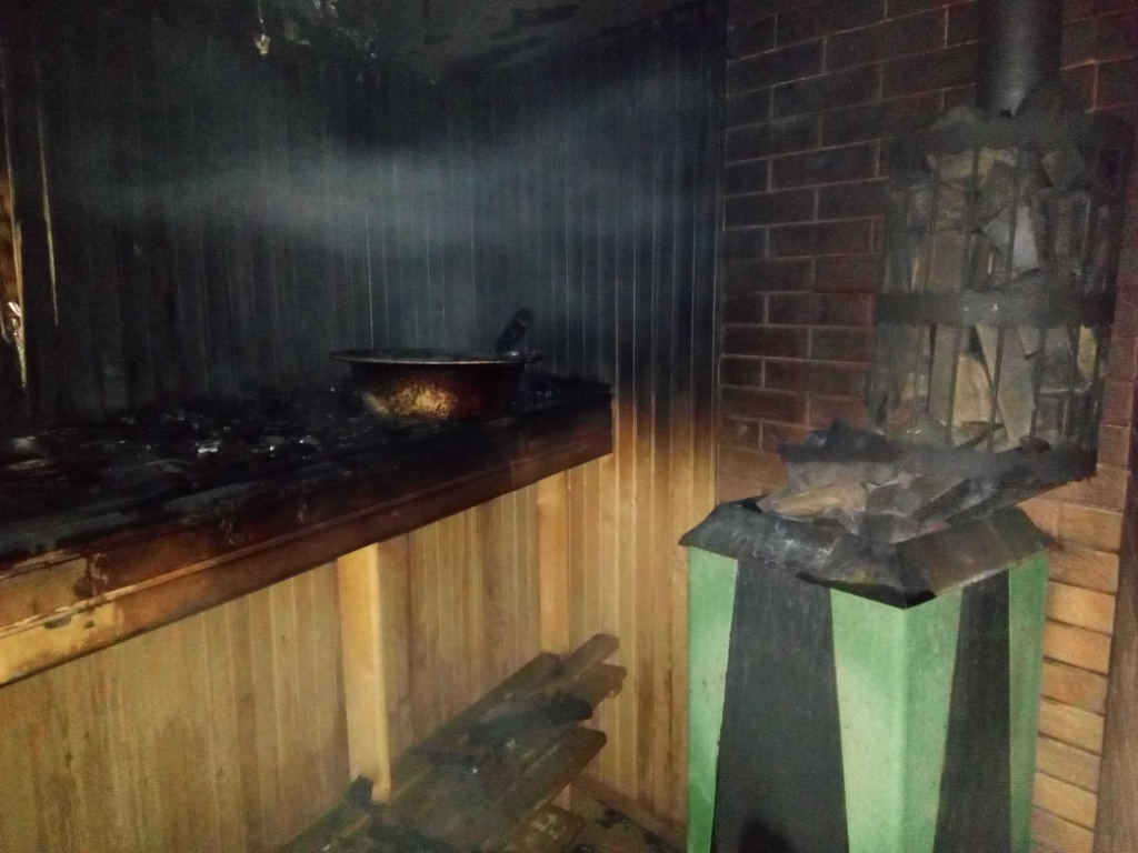 В помещении сауны повреждена отделка и имущество, закопчены стены и потолок. Предполагаемая причина пожара — нарушение правил эксплуатации печей, теплогенерирующих агрегатов и устройств.