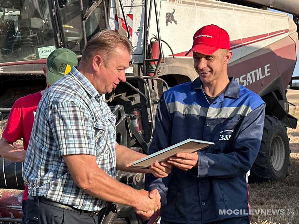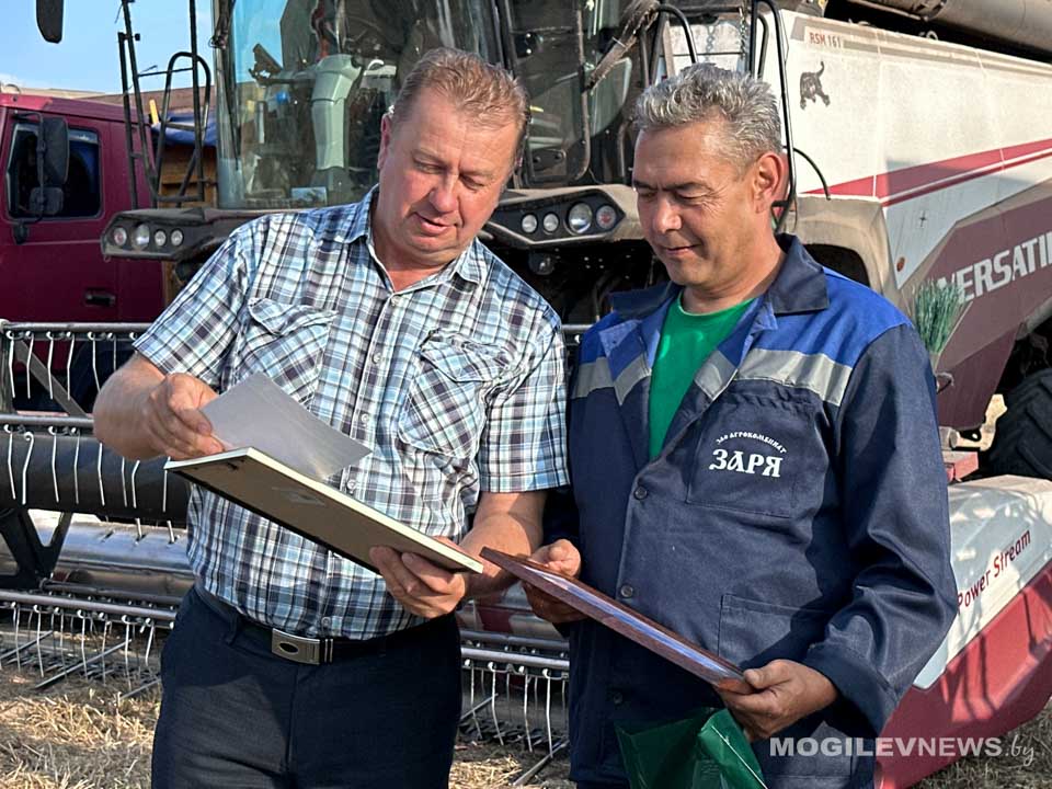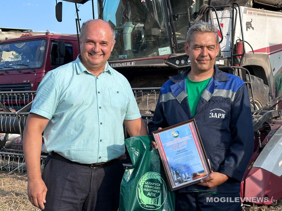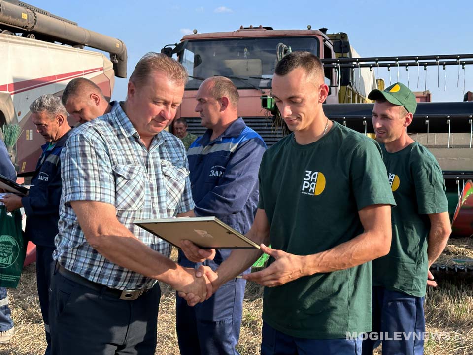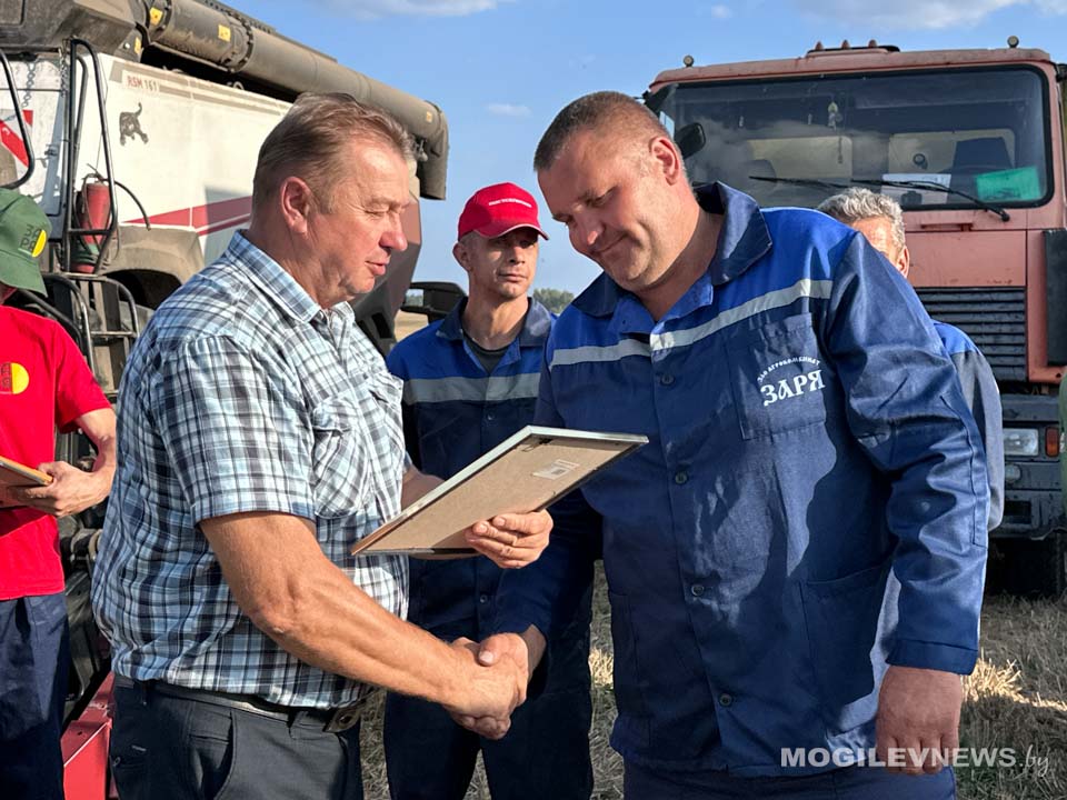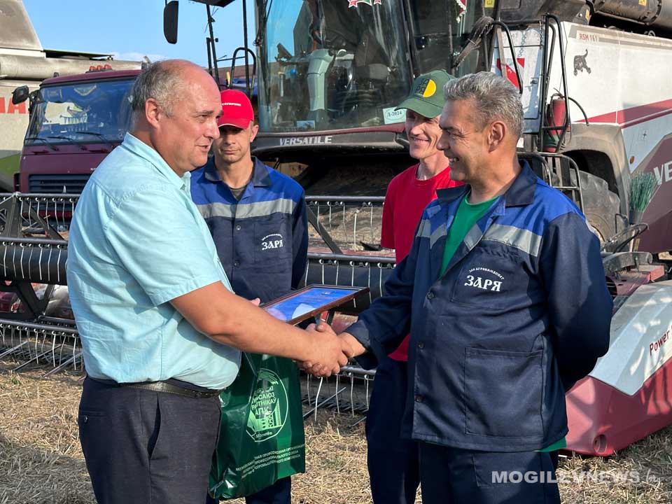 Поздравить водителей и комбайнеров за самоотверженный труд и результативную работу приехали заместитель председателя – начальник управления по сельскому хозяйству и продовольствию Могилевского райисполкома Геннадий Давыдов, председатель Могилевского областного комитета Белорусского профсоюза работников АПК Владимир Петрович, председатель Могилевской районной организации профсоюза работников АПК Валентин Соловей, а также генеральный директор агрокомбината «Заря» Екатерина Заровская.