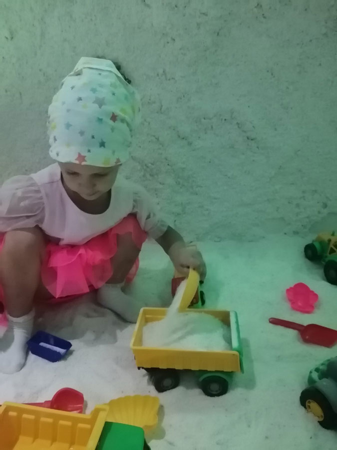 Современный кабинет спелеотерапии работает в поликлинике № 3 Могилева. Процедура появилась здесь 3 года назад. За это время спелеокомнату посетили около 1,5тыс человек — взрослых и детей. Особенно полюбилась спелеокомната детям, где они играют с солью, как в песочнице, могут рисовать солью на специальном столике с подсветкой.
