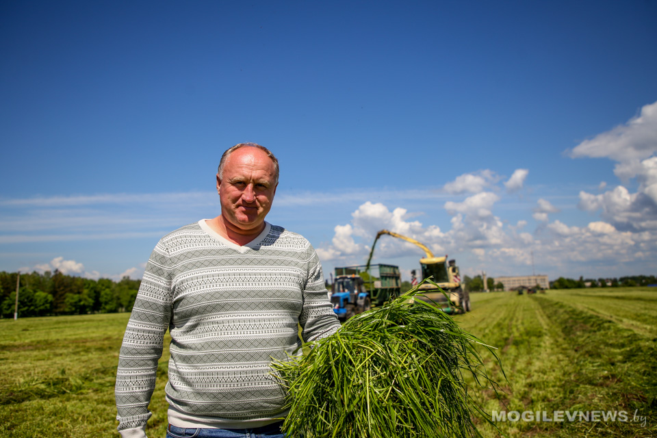 — Заготовка кормов для нас — всегда очень ответственная задача. Хочется быстрее скосить траву, пока есть погода, а затем ждать второго укоса. Будем думать, что он тоже порадует нас, — выразил надежду первый заместитель директора ОАО «Рассвет имени К.П.Орловского» Александр Жилинский. — Мы уже успели заложить две траншеи (более 8 тысяч тонн травянистых кормов). Всего же нам нужно загото вить 25 тыс. тонн сенажа и 3600 тонн сена. Первый укос многолетних трав лишь начальный этап большой работы по заготовке кормов, которая будет продолжаться до глубокой осени.