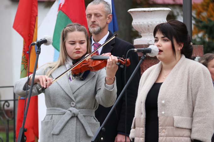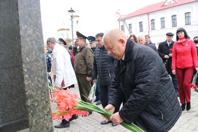 Торжественным митингом у братской могилы в парке Мира районного центра начались праздничные мероприятия. «Более 15 тысяч сынов Мстиславщины сражались в рядах Красной Армии в годы Великой Отечественной войны. Около 6,5 тысячи жителей района погибли на полях сражений. Мстиславцы по праву гордятся своими славными земляками: имена двух кавалеров ордена Славы и семи Героев Советского Союза увековечены на Аллее Славы. Здесь, в братской могиле, захоронены тела 299 военнослужащих, отдавших свои жизни, защищая землю Мстиславщины», – напомнил председатель Мстиславского райисполкома Дмитрий Пимошенко в своей поздравительной речи.