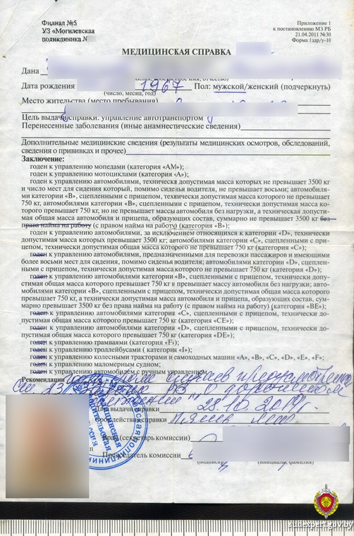 — Житель Могилева обратился в МРЭО ГАИ для замены водительского удостоверения и представил медицинскую справку о состоянии здоровья, подлинность которой вызвала сомнения у сотрудников Госавтоинспекции, в частности подозрения касались даты выдачи. По данному факту в Могилевском межрайонном отделе ГКСЭ проведена судебная экспертиза медицинской справки. По результатам исследований судебный эксперт пришел к выводу, что первоначальное содержание записи в графе «Дата выдачи справки» подвергалось техническому изменению способом дорисовки к верхней части цифры «4» дугового штриха, в результате чего образовалась цифра «9». Таким образом, год выдачи справки читался не как 2014-й (который указан в справке первоначально), а уже как 2019-й, — рассказала официальный представитель управления ГКСЭ по Могилевской области Ирина Рачковская.