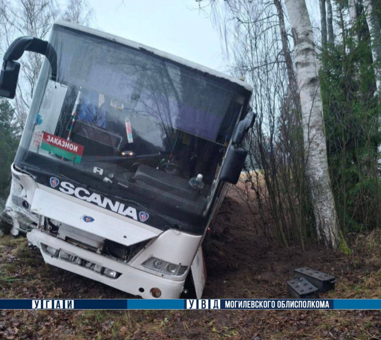 На 67-м км автодороги Р-122 Могилев — Чериков — Костюковичи сегодня произошло ДТП с участием автобуса и легкового автомобиля Ford. После столкновения автобус съехал в кювет.