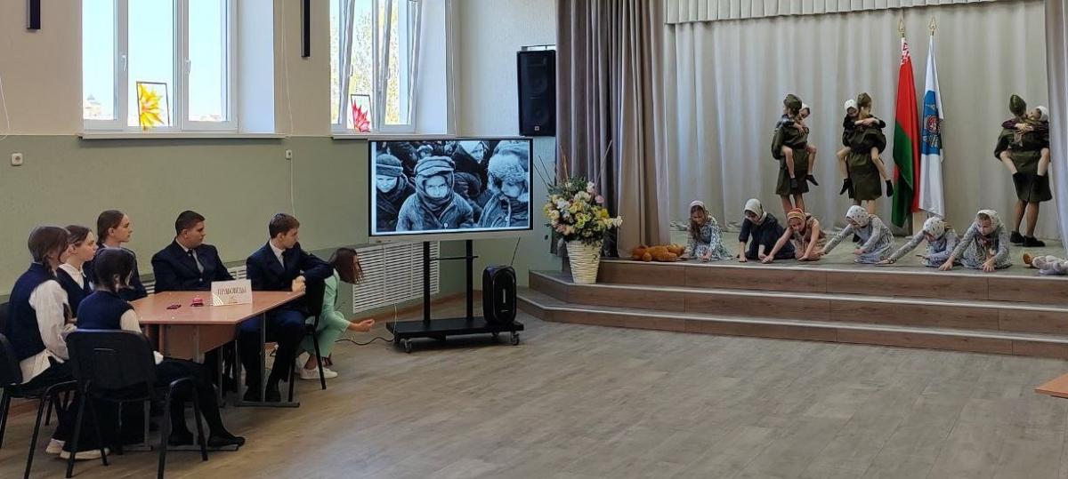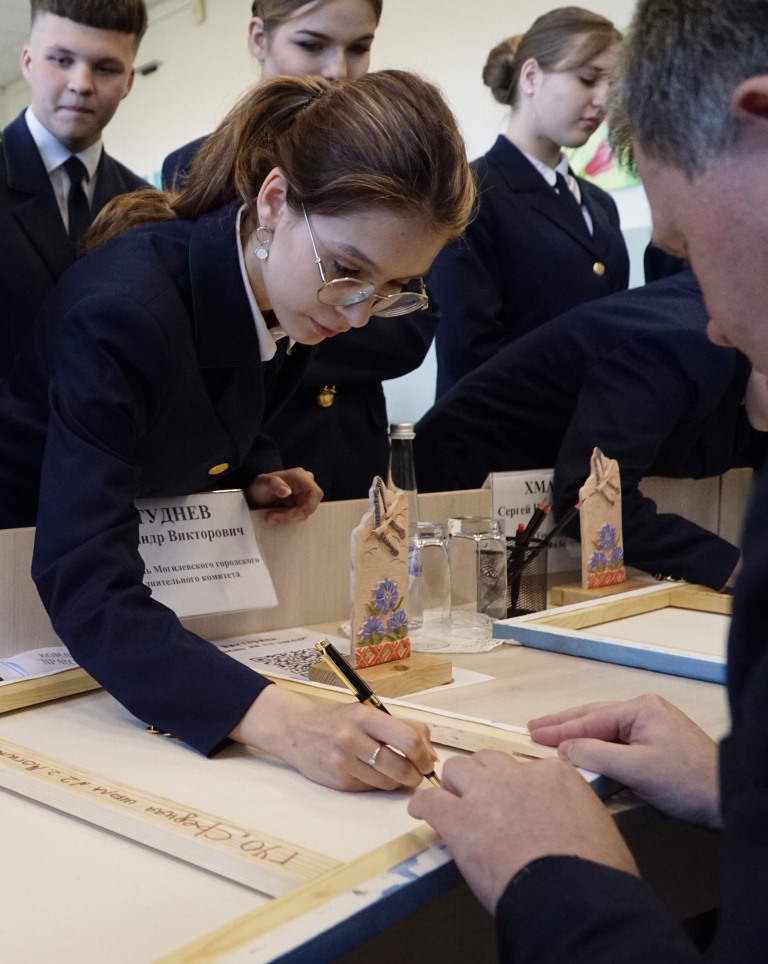 В ходе встречи гостям представили тематические видео презентации и творческие номера, затронув тему геноцида в годы Великой Отечественной войны. Ученики профильного класса рассказали о практическом опыте обучения ребятами 9-ых классов, которые планируют учиться в правовом классе с 1 сентября 2024 года. А также вручили почетным гостям памятные сувениры, изготовленные учащимися, в частности картины, на которых, по предложению Александра Студнева, все ученики класса «Юный прокурор» оставили свои пожелания и подписи. «Возможно, здесь есть подпись будущего Генерального прокурора Республики Беларусь», — отметили из зала.