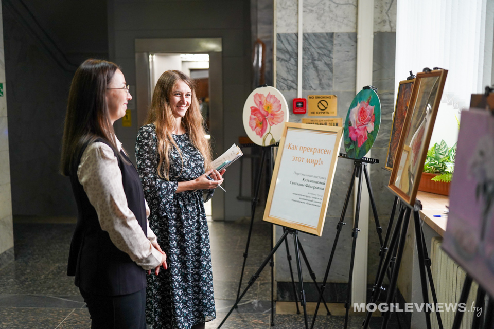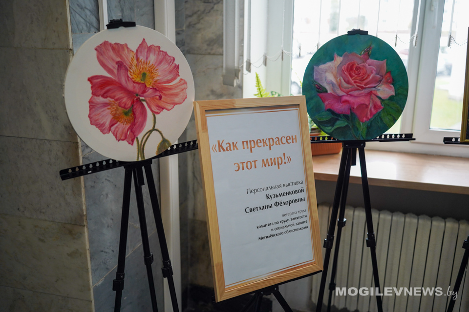 В преддверии Дня пожилых людей в фойе Могилевского облисполкома развернулась яркая и душевная выставка «Как прекрасен этот мир!». Ее автор — Светлана Кузьменкова, бывший сотрудник комитета по труду, занятости и социальной защите Могилевского облисполкома, а ныне — пенсионерка, открывшая в себе талант художника.